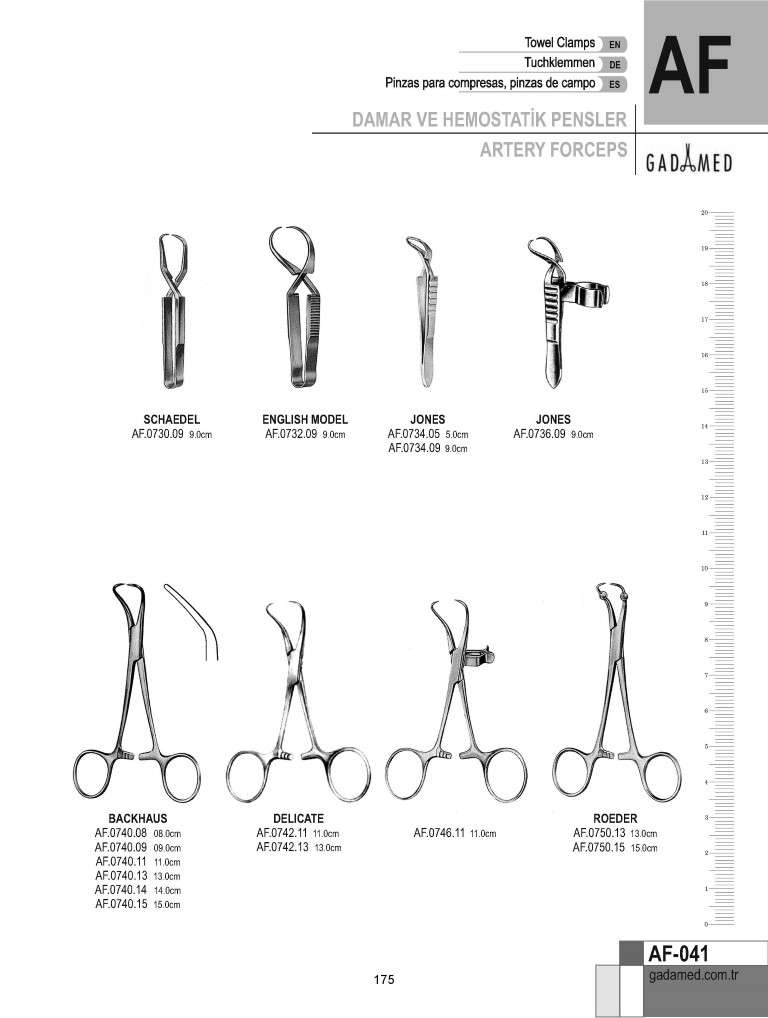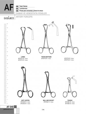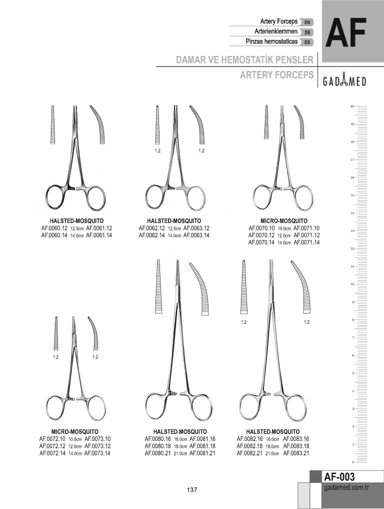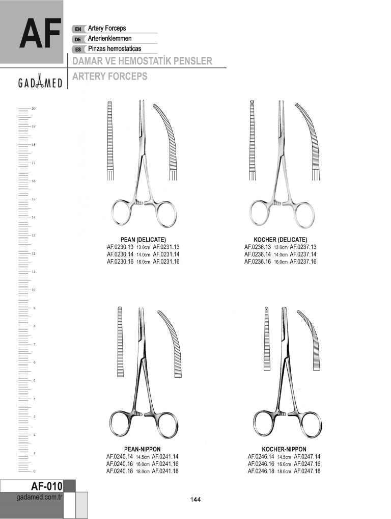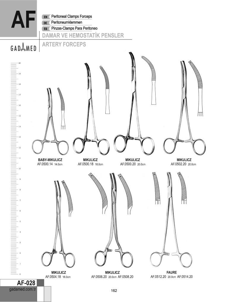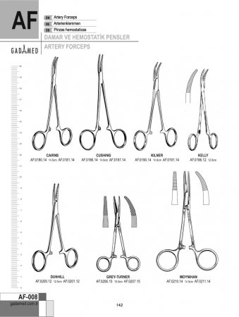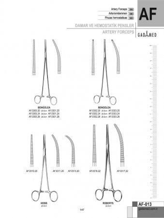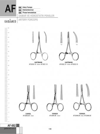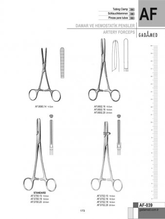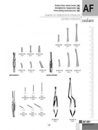 AF.0010.03 8681091018888 Buldog klemp düz, Dieffenbach model 3.5 cm AF.0010.05 8681091018895 Buldog klemp düz, Dieffenbach model 5.5 cm AF.0010.06 8681091018901 Buldog klemp düz, Dieffenbach model 6.0 cm AF.0011.03 8681091018918 Buldog klemp eğri, Dieffenbach model 3.5 cm AF.0011.05 8681091018925 Buldog klemp eğri, Dieffenbach model 5.5 cm AF.0011.06 8681091018932 Buldog klemp eğri, Dieffenbach model 6.0 cm AF.0016.05 8681091018949 Buldog klemp düz, Johns-Hopkins model 5.0 cm AF.0016.06 8681091018956 Buldog klemp düz, Johns-Hopkins model 6.5 cm AF.0016.07 8681091018963 Buldog klemp düz, Johns-Hopkins model 7.5 cm AF.0017.05 8681091018970 Buldog klemp eğri, Johns-Hopkins model 5.0 cm AF.0017.06 8681091018987 Buldog klemp eğri, Johns-Hopkins model 5.0 cm AF.0017.07 8681091018994 Buldog klemp eğri, Johns-Hopkins model 5.0 cm AF.0020.08 8681091019007 Buldog klemp düz, diethrich model 8mm, 5.0 cm AF.0020.12 8681091019014 Buldog klemp düz, diethrich model 12mm, 5.0 cm AF.0020.20 8681091019021 Buldog klemp düz, diethrich model 20mm, 6.0 cm AF.0021.08 8681091019038 Buldog klemp açılı, diethrich model 8mm, 5.0 cm AF.0021.12 8681091019045 Buldog klemp açılı, diethrich model 12mm, 5.0 cm AF.0021.20 8681091019052 Buldog klemp açılı, diethrich model 20mm, 6.0 cm AF.0026.14 8681091019069 Vessel klip W/lock 14 cm AF.0028.18 8681091019076 Vessel klip W/lock 18 cm AF.0030.10 8681091019083 Hemostatik klemp düz, Hartmann model 10.0 cm AF.0031.10 8681091019090 Hemostatik klemp eğri, Hartmann model 10.0 cm AF.0032.10 8681091019106 Hemostatik klemp düz, Hartmann model dişli 1x2 10.0 cm AF.0033.10 8681091019113 Hemostatik klemp eğri, Hartmann model dişli 1x2 10.0 cm AF.0040.08 8681091019120 Hemostatik klemp düz, Carrel model 8.5 cm AF.0044.08 8681091019137 Hemostatik klemp düz, Terrier model dişli 1x2 8.5 cm AF.0048.09 8681091019144 Hemostatik klemp düz, Terrier model dişli 1x2 9.0 cm AF.0049.09 8681091019151 Hemostatik klemp eğri, Terrier model dişli 1x2 9.0 cm AF.0060.12 8681091019168 Hemostatik klemp düz, Halsted-Mosquito model 12.5 cm AF.0060.14 8681091019175 Hemostatik klemp düz, Halsted-Mosquito model 14.0 cm AF.0061.12 8681091019182 Hemostatik klemp eğri, Halsted-Mosquito model 12.5 cm AF.0061.14 8681091019199 Hemostatik klemp eğri, Halsted-Mosquito model 14.0 cm AF.0062.12 8681091019205 Hemostatik klemp düz, Halsted-Mosquito model dişli 1x2 12.5 cm AF.0062.14 8681091019212 Hemostatik klemp düz, Halsted-Mosquito model dişli 1x2 14.0 cm AF.0063.12 8681091019229 Hemostatik klemp eğri, Halsted-Mosquito model dişli 1x2 12.5 cm AF.0063.14 8681091019236 Hemostatik klemp eğri, Halsted-Mosquito model dişli 1x2 14.0 cm AF.0070.10 8681091019243 Hemostatik klemp düz, Mikro Mosquito model 10.0 cm AF.0070.12 8681091019250 Hemostatik klemp düz, Mikro Mosquito model 12.0 cm AF.0070.14 8681091019267 Hemostatik klemp düz, Mikro Mosquito model 14.0 cm AF.0071.10 8681091019274 Hemostatik klemp eğri, Mikro Mosquito model 10.0 cm AF.0071.12 8681091019281 Hemostatik klemp eğri, Mikro Mosquito model 12.0 cm AF.0071.14 8681091019298 Hemostatik klemp eğri, Mikro Mosquito model 14.0 cm AF.0072.10 8681091019304 Hemostatik klemp düz, Mikro Mosquito model dişli 1x2 10.0 cm AF.0072.12 8681091019311 Hemostatik klemp düz, Mikro Mosquito model dişli 1x2 12.0 cm AF.0072.14 8681091019328 Hemostatik klemp düz, Mikro Mosquito model dişli 1x2 14.0 cm AF.0073.10 8681091019335 Hemostatik klemp eğri, Mikro Mosquito model dişli 1x2 10.0 cm AF.0073.12 8681091019342 Hemostatik klemp eğri, Mikro Mosquito model dişli 1x2 12.0 cm AF.0073.14 8681091019359 Hemostatik klemp eğri, Mikro Mosquito model dişli 1x2 14.0 cm AF.0080.16 8681091019366 Hemostatik klemp düz, Halsted-Mosquito model 16.0 cm AF.0080.18 8681091019373 Hemostatik klemp düz, Halsted-Mosquito model 18.0 cm AF.0080.21 8681091019380 Hemostatik klemp düz, Halsted-Mosquito model 21.0 cm AF.0081.16 8681091019397 Hemostatik klemp eğri, Halsted-Mosquito model 16.0 cm AF.0081.18 8681091019403 Hemostatik klemp eğri, Halsted-Mosquito model 18.0 cm AF.0081.21 8681091019410 Hemostatik klemp eğri, Halsted-Mosquito model 21.0 cm AF.0082.16 8681091019427 Hemostatik klemp düz, Halsted-Mosquito model dişli 1x2 16.0 cm AF.0082.18 8681091019434 Hemostatik klemp düz, Halsted-Mosquito model dişli 1x2 18.0 cm AF.0082.21 8681091019441 Hemostatik klemp düz, Halsted-Mosquito model dişli 1x2 21.0 cm AF.0083.16 8681091019458 Hemostatik klemp eğri, Halsted-Mosquito model dişli 1x2 16.0 cm AF.0083.18 8681091019465 Hemostatik klemp eğri, Halsted-Mosquito model dişli 1x2 18.0 cm AF.0083.21 8681091019472 Hemostatik klemp eğri, Halsted-Mosquito model dişli 1x2 21.0 cm AF.0090.14 8681091019489 Hemostatik klemp düz, Kelly model 14.0 cm AF.0091.14 8681091019496 Hemostatik klemp eğri, Kelly model 14.0 cm AF.0094.14 8681091019502 Hemostatik klemp düz, Crile model 14.0 cm AF.0095.14 8681091019519 Hemostatik klemp eğri, Crile model 14.0 cm AF.0096.14 8681091019526 Hemostatik klemp düz, Crile model dişli 1x2 14.0 cm AF.0097.14 8681091019533 Hemostatik klemp eğri, Crile model dişli 1x2 14.0 cm AF.0100.16 8681091019540 Hemostatik klemp düz, Rankin-Kelly model 16.0 cm AF.0101.16 8681091019557 Hemostatik klemp eğri, Rankin-Kelly model 16.0 cm AF.0104.16 8681091019564 Hemostatik klemp düz, Rankin-Crile model 16.0 cm AF.0105.16 8681091019571 Hemostatik klemp eğri, Rankin-Crile model 16.0 cm AF.0106.16 8681091019588 Hemostatik klemp düz, Crile-Rankin model 16.0 cm AF.0107.16 8681091019595 Hemostatik klemp eğri, Crile-Rankin model 16.0 cm AF.0110.14 8681091019601 Hemostatik klemp düz, Crile-Delicate model 14.0 cm AF.0111.14 8681091019618 Hemostatik klemp eğri, Crile-Delicate model 14.0 cm AF.0116.14 8681091019625 Hemostatik klemp düz, Crile-Delicate model dişli 1x2 14.0 cm AF.0117.14 8681091019632 Hemostatik klemp eğri, Crile-Delicate model dişli 1x2 14.0 cm AF.0120.14 8681091019649 Hemostatik Klemp düz, Coller-Crile model 14.0 cm 