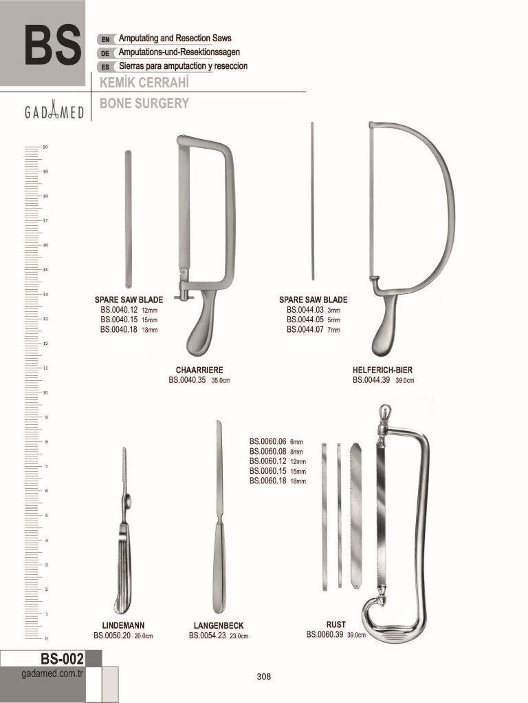 BS.0010.27 8681091039876 CHARRIERE AMPÜTASYON TESTERESİ 27CM BS.0010.30 8681091039883 CHARRIERE AMPÜTASYON TESTERESİ 30CM BS.0010.34 8681091039890 CHARRIERE AMPÜTASYON TESTERESİ 34CM BS.0014.31 8681091039906 SATTERLEE AMPÜTASYON TESTERESİ 31CM BS.0020.27 8681091039913 CHARRIERE AMPÜTASYON TESTERESİ 27CM BS.0020.30 8681091039920 CHARRIERE AMPÜTASYON TESTERESİ 30CM BS.0024.31 8681091039937 SATTERLEE AMPÜTASYON TESTERESİ 31CM BS.0030.23 8681091039944 ORDU TİPİ AMPÜTASYON TESTERESİ 23CM BS.0034.19 8681091039951 ORDU TİPİ AMPÜTASYON TESTERESİ 19CM BS.0040.12 8681091039968 CHARRIERE AMPÜTASYON TESTERESİ İÇİN YEDEK BIÇAK 12MM BS.0040.15 8681091039975 CHARRIERE AMPÜTASYON TESTERESİ İÇİN YEDEK BIÇAK 15MM BS.0040.18 8681091039982 CHARRIERE AMPÜTASYON TESTERESİ İÇİN YEDEK BIÇAK 18MM BS.0040.35 8681091039999 CHARRIERE AMPÜTASYON TESTERESİ 35CM BS.0044.03 8681091040001 YEDEK BIÇAK 3MM, CHARRIERE TESTERE İÇİN BS.0044.05 8681091040018 YEDEK BIÇAK 5MM, CHARRIERE TESTERE İÇİN BS.0044.07 8681091040025 YEDEK BIÇAK 7MM, CHARRIERE TESTERE İÇİN BS.0044.39 8681091040032 HELFERİCH - BİER AMPÜTASYON TESTERESİ 39CM BS.0050.20 8681091040049 LİNDEMANN RESEKSİYON TESTERESİ 20CM BS.0054.23 8681091040056 LANGENBECK PARMAK TESTERESİ 23CM BS.0060.06 8681091040063 KÜNT TESTERE İÇİN YEDEK BIÇAK 6MM BS.0060.08 8681091040070 KÜNT TESTERE İÇİN YEDEK BIÇAK 8MM BS.0060.12 8681091040087 KÜNT TESTERE İÇİN YEDEK BIÇAK 12MM BS.0060.15 8681091040094 KÜNT TESTERE İÇİN YEDEK BIÇAK 15MM BS.0060.18 8681091040100 KÜNT TESTERE İÇİN YEDEK BIÇAK 18MM BS.0060.39 8681091040117 KÜNT AMPÜTASYON TESTERESİ 39CM BS.0070.00 8681091040124 24CM UÇ İLE STILLE SHERMAN EL MATKABI SET BS.0070.24 8681091040131 YALNIZCA 24CM STİLLER SHERMAN EL MATKABI BS.0072.25 8681091040148 HELEZON MATKAP UCU 2.5MM BS.0072.30 8681091040155 HELEZON MATKAP UCU 3MM BS.0072.35 8681091040162 HELEZON MATKAP UCU 3.5MM BS.0074.00 8681091040179 HUDSON BRACE 27CM SET BS.0074.27 8681091040186 HUDSON YALNIZCA ATEL 27CM BS.0076.01 8681091040193 HUDSON KONİK BUR. 9.0MM BS.0076.02 8681091040209 HUDSON KONİK BUR. 14.0MM BS.0076.03 8681091040216 HUDSON KÜRESEL BUR 16.0MM BS.0076.04 8681091040223 HUDSON KÜRESEL BUR 22.0MM BS.0076.05 8681091040230 CUSHING DÜZ PERFORATOR 14MM BS.0076.06 8681091040247 HUDSON ATEL İÇİN ADSON MATKAP 2MM BS.0076.07 8681091040254 HUDSON ATEL İÇİN MCKENZIE MATKAP UCU 13MM BS.0076.08 8681091040261 HUDSON ATEL İÇİN ERRİCO MATKAP UCU 16MM BS.0076.09 8681091040278 HUDSON UZATMA PARÇASI (ATEL İÇİN) BS.0080.00 8681091040285 STILLE KEMİK EL MATKABI 20CM SET DELGİLER İLE BS.0080.20 8681091040292 YALNIZCA STILLE EL MATKABI BS.0082.01 8681091040308 HELEZON MATKAP 2.5MM BS.0082.02 8681091040315 HELEZON MATKAP 3.0MM BS.0082.03 8681091040322 HELEZON MATKAP 3.5MM BS.0082.04 8681091040339 HELEZON MATKAP 4.0MM BS.0082.05 8681091040346 KÜRESEL BUR. 10.0MM BS.0082.06 8681091040353 KÜRESEL BUR. 5.0MM BS.0082.07 8681091040360 KÜRESEL BUR. 8.0MM BS.0082.08 8681091040377 KÜRESEL BUR. 12.0MM BS.0082.09 8681091040384 KÜRESEL BUR. 16.0MM BS.0082.10 8681091040391 HELEZON MATKAP UCU 1.0MM BS.0082.11 8681091040407 HELEZON MATKAP UCU 1.5MM BS.0082.12 8681091040414 HELEZON MATKAP UCU 2.0MM BS.0084.00 8681091040421 MOORE EL MATKABI / S.S JACOB KOVAN İLE ve 3 HELEZONLU BS.0084.01 8681091040438 S.S JACOB KOVAN İLE MOORE EL MATKABI BS.0084.07 8681091040445 HELEZONLU MATKAP UCU 3.2MM 7CM BS.0084.08 8681091040452 HELEZONLU MATKAP SETİ BS.0084.09 8681091040469 HELEZONLU MATKAP UCU 3.2MM 9CM BS.0090.00 8681091040476 JACOB MATKAP KOVANI 6.35MM BS.0092.00 8681091040483 JACOB MATKAP KOVANI S.S VE UFAK BOY ANAHTAR BS.0094.00 8681091040490 JACOB MATKAP KOVANI S.S VE ANAHTAR BS.0100.00 8681091040506 S.S KOVAN İLE BUNNEL EL MATKABI 16CM BS.0104.00 8681091040513 RALK S.S. KOVAN İLE KEMİK EL MATKABI BS.0108.00 8681091040520 KOVANLI RALK-UNIVERSAL KEMİK EL MATKABI 28CM BS.0110.00 8681091040537 KOVANLI RALK-UNIVERSAL KEMİK EL MATKABI 28CM BS.0112.00 8681091040544 AYARLANABİLİR SAP İLE TABANCA ŞEKİLLİ EL MATKABI BS.0116.00 8681091040551 S.S. KOVAN İLE KEMİK EL MATKABI BS.0120.00 8681091040575 S.S. JACOB KOVAN ANAHTARI İLE T ŞEKİLLİ SAP BS.0122.00 8681091040582 ANAHTAR İLE S.S. JACOB KOVANLI MATKAP TUTACAĞI 14CM BS.0124.00 8681091040599 KIRSCHNER KILAVUZLU KEMİK EL MATKABI BS.0124.01 8681091040605 KIRSCHNER EL MATKABI İÇİN KILAVUZ BS.0128.00 8681091040612 KIRSCHNER MODEL KILAVUZLU EL MATKABI BS.0128.01 8681091040629 YALNIZCA EL MATKABI İÇİN KILAVUZ BS.0128.02 8681091040636 YALNIZCA TEL MAKTAP KILAVUZI İÇİN KAPLİN YAYI BS.0128.03 8681091040643 YALNIZCA TEL MAKTAP KILAVUZI İÇİN KOVAN BS.0130.15 8681091040650 ADSON MATKAP KILAVUZU FORSEPS 15CM BS.0134.18 8681091040667 KEMİK PLAKALARI İÇİN LANE FORSEPS 18CM BS.0140.22 8681091040674 LANE KEMİK VİDA TUTUCU FORSEPS 22CM BS.0144.22 8681091040681 LANE KEMİK PLAKA TUTUCU FORSEPS 22CM BS.0150.18 8681091040698 LANE KEMİK PLAKA BÜKÜCÜ DEMİR 18CM BS.0154.25 8681091040704 KEMİK PLAKA BÜKÜCÜ DEMİR AĞIR MODEL 25.5CM BS.0160.25 8681091040711 LANE TORNA VİDA (+) ŞEKİLLİ 25CM S.S. TUTACAK BS.0164.25 8681091040728 PHILLIPS MODEL YILDIZ TORNAVİDA 25CM BS.0170.17 8681091040735 LANE MODEL TORNAVİDA 17CM BS.0170.25 8681091040742 LANE MODEL TORNAVİDA 25CM BS.0174.24 8681091040759 WİLLİAMS KENDİNDEN KİLİTLEMELİ TORNAVİDA ( - ) 24CM BS.0180.25 8681091040766 FİBER SAPLI ALTIGEN TORNAVİDA 2.5MM 25CM BS.0180.35 8681091040773 FİBER SAPLI ALTIGEN TORNAVİDA 3.5MM 25CM BS.0180.45 8681091040780 FİBER SAPLI ALTIGEN TORNAVİDA 4.5MM 25CM BS.0184.25 8681091040797 PHILIPS FİBER SAPLI YILDIZ TORNAVİDA 25CM BS.0190.25 8681091040803 FİBER SAPLI TORNAVİDA (+) 25CM BS.0194.17 8681091040810 LANE MODEL FİBER SAPLI TORNAVİDA 17CM BS.0194.25 8681091040827 LANE MODEL FİBER SAPLI LANE TORNAVİDA (-) 25CM BS.0200.00 8681091040834 ÇANTA İÇERİSİNDE TAM TORNAVİDA SETİ BS.0200.01 8681091040841 YALNIZCA STERİLİZA