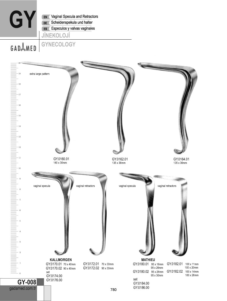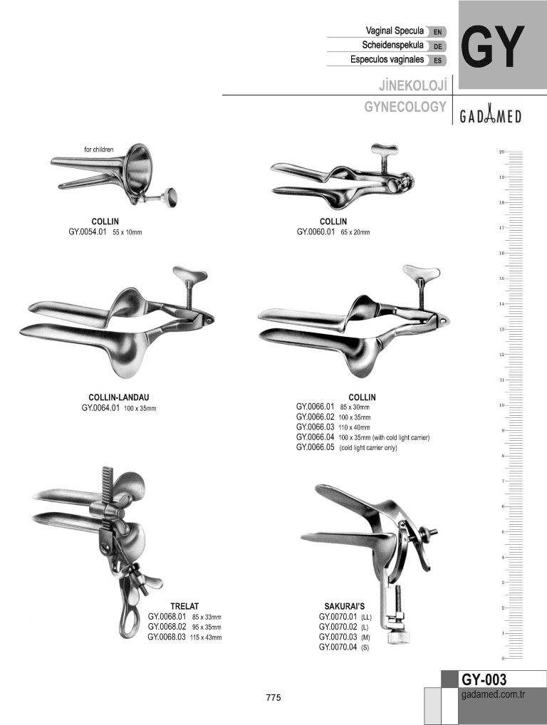 GY.0010.01 8681091084463 CUSCO VAJİNAL SPEKULUM ORTA ÇEVİRME 75X17MM BAKİRE GY.0010.02 8681091084470 CUSCO VAJİNAL SPEKULUM ORTA ÇEVİRME 75X32MM GY.0010.03 8681091084487 CUSCO VAJİNAL SPEKULUM ORTA ÇEVİRME 85X35MM GY.0010.04 8681091084494 CUSCO VAJİNAL SPEKULUM ORTA ÇEVİRME 100X35MM GY.0014.01 8681091084500 CUSCO VAJİNAL SPEKULUM 75X17MM BAKİRE GY.0014.02 8681091084517 CUSCO VAJİNAL SPEKULUM 75X32MM KÜÇÜK GY.0014.03 8681091084524 CUSCO VAJİNAL SPEKULUM ORT/ÇEV 80X32MM GY.0014.04 8681090900399 CUSCO VAJİNAL SPEKULUM ORT/ÇEV 85X35MM GY.0014.05 8681091084531 CUSCO VAJİNAL SPEKULUM 100X35MM BÜYÜK GY.0014.06 8681091084548 CUSCO VAJİNAL SPEKULUM 115X37MM ÇOK BÜYÜK GY.0020.01 8681091084555 CUSCO SPEKULUM LAT. ÇEVİRME DÜZ UÇ 75X32MM GY.0020.02 8681091084562 CUSCO SPEKULUM LET. ÇEVİRME DÜZ UÇ 85X35MM GY.0020.03 8681091084579 CUSCO SPEKULUM LAT. ÇEVİRME DÜZ UÇ 100X35MM GY.0020.04 8681091084586 CUSCO VAJİNAL SPEKULUMLAR 85X35MM, F.O.L. TAŞIYICILI GY.0020.05 8681091084593 CUSCO VAJİNAL SPEKULUMLAR (SADECE SOĞUK HAFİF TAŞIYICI) GY.0022.01 8681091084609 CUSCO SPEKULUM LAT. ÇEVİRME DÜZ UÇ 75X17MM GY.0022.02 8681091084616 CUSCO SPEKULUM LAT. ÇEVİRME YUVARLAK UÇ 85X17MM GY.0022.03 8681091084623 CUSCO SPEKULUM LAT. ÇEVİRME DÜZ UÇ 100X17MM GY.0024.01 8681091084630 CUSCO VAJİNAL SPEKULUM İSVİÇRE 90X23MM GY.0024.02 8681091084647 CUSCO VAJİNAL SPEKULUM İSVİÇRE 100X25MM GY.0024.03 8681091084654 CUSCO VAJİNAL SPEKULUM İSVİÇRE 110X27MM GY.0024.04 8681091084661 CUSCO VAJİNAL SPEKULUM İSVİÇRE 115X27MM GY.0026.01 8681091084678 CUSCO VAJİNAL SPEKULUM JAPON MODELİ "LL" GY.0026.02 8681091084685 CUSCO VAJİNAL SPEKULUM JAPON MODELİ "L" GY.0026.03 8681091084692 CUSCO VAJİNAL SPEKULUM JAPON MODELİ "M" GY.0026.04 8681091084708 CUSCO VAJİNAL SPEKULUM JAPON MODELİ "S" GY.0026.05 8681091084715 CUSCO VAJİNAL SPEKULUM JAPON MODELİ "SS" GY.0026.06 8681091084722 CUSCO VAJİNAL SPEKULUM JAPON MODELİ "SSS" GY.0030.01 8681091084739 PEDERSON VAJİNAL SPEKULUM 75X13MM GY.0030.02 8681091084746 PEDERSON VAJİNAL SPEKULUM 100X22MM GY.0030.03 8681091084753 PEDERSON VAJİNAL SPEKULUM 120X25MM GY.0030.04 8681091084760 PEDERSON VAJİNAL SPEKULUM 130X25MM GY.0034.01 8681091084777 GRAVE VAJİNAL SPEKULUM 75X20MM GY.0034.02 8681091084784 GRAVE VAJİNAL SPEKULUM 95X35MM GY.0034.03 8681091084791 GRAVE VAJİNAL SPEKULUM 115X35MM GY.0034.04 8681091084807 GRAVE VAJİNAL SPEKULUM 125X35MM GY.0040.01 8681091084814 SEMM VAJİNAL SPEKULUM 100X17/20MM GY.0040.02 8681091084821 SEMM VAJİNAL SPEKULUM 100X25/30MM GY.0050.01 8681091084838 FERGUSSON VAJİNAL SPEKULUMLAR 25MM ŞEK.1 GY.0050.02 8681091084845 FERGUSSON VAJİNAL SPEKULUMLAR 30MM ŞEK.2 GY.0050.03 8681091084852 FERGUSSON VAJİNAL SPEKULUMLAR 35MM ŞEK.3 GY.0050.04 8681091084869 FERGUSSON VAJİNAL SPEKULUMLAR 40MM ŞEK.4 GY.0054.01 8681091084876 COLLIN VAJİNAL SPEKULUM ÇOCUK C/P 65X10MM GY.0060.01 8681091084883 COLLIN VAJİNAL SPEKULUM 65X20MM GY.0064.01 8681091084890 COLLIN LANDAU VAJİNAL SPEKULUMLAR 100X35MM GY.0066.01 8681091084906 COLLIN VAJİNAL SPEKULUM 85X30MM GY.0066.02 8681091084913 COLLIN VAJİNAL SPEKULUM 100X35MM GY.0066.03 8681091084920 COLLIN VAJİNAL SPEKULUM 110X40MM GY.0066.04 8681091084937 CUSCO V/ SPEKULUMLAR 100X35MM, F.O.L. TAŞIYICILI GY.0066.05 8681091084944 FİBER OPTİK HAFİF TAŞIYICI COLLIN SPEKULUMLAR İÇİN GY.0068.01 8681091084951 TRELAT VAJİNAL SPEKULUM 85X33MM GY.0068.02 8681091084968 TRELAT VAJİNAL SPEKULUM 95X35MM GY.0068.03 8681091084975 TRELAT VAJİNAL SPEKULUM 115X43MM GY.0070.01 8681091084982 SAKURAI VAJİNAL SPEKULUM "LL" GY.0070.02 8681091084999 SAKURAI VAJİNAL SPEKULUM "L" GY.0070.03 8681091085002 SAKURAI VAJİNAL SPEKULUM "M" GY.0070.04 8681091085019 SAKURAI VAJİNAL SPEKULUM "S" GY.0080.01 8681091085026 JACKSON VAJİNAL SPEKULUM 75X35MM GY.0080.02 8681091085033 JACKSON VAJİNAL SPEKULUM 90X35MM GY.0080.03 8681091085040 JACKSON VAJİNAL SPEKULUM 100X35MM GY.0080.04 8681091085057 JACKSON VAJİNAL SPEKULUM 75X38MM GY.0080.05 8681091085064 JACKSON VAJİNAL SPEKULUM 90X38MM GY.0080.06 8681091085071 JACKSON VAJİNAL SPEKULUM 100X38MM GY.0084.01 8681091085088 EASTMANN VAJİNAL SPEKULUM 75X35MM GY.0084.02 8681091085095 EASTMANN VAJİNAL SPEKULUM 90X35MM GY.0084.03 8681091085101 EASTMANN VAJİNAL SPEKULUM 100X35MM GY.0084.04 8681091085118 EASTMANN VAJİNAL SPEKULUM 75X40MM GY.0084.05 8681091085125 EASTMANN VAJİNAL SPEKULUM 90X40MM GY.0084.06 8681091085132 EASTMANN VAJİNAL SPEKULUM 100X40MM GY.0090.01 8681091085149 SIMS VAJİNAL SPEKULUM D/UÇLU KÜÇÜK ŞEK.1 GY.0090.02 8681091085156 SIMS VAJİNAL SPEKULUM D/UÇLU MEDİCONİUM ŞEK.2 GY.0090.03 8681091085163 SIMS VAJİNAL SPEKULUM D/UÇLU BÜYÜK ŞEK.3 GY.0090.04 8681091085170 SIMS VAJİNAL SPEKULUM D/E XL,100X35/120X40MM GY.0090.05 8681091085187 SIMS VAJİNAL SPEKULUM D/E XXL,100X35/120X40MM GY.0094.01 8681091085194 SIMS VAJİNAL SPEKULUM SAPLI 60X25+30MM GY.0094.02 8681091085200 SIMS VAJİNAL SPEKULUM SAPLI 70X30+35MM GY.0094.03 8681091085217 SIMS VAJİNAL SPEKULUM SAPLI 80X35+40MM GY.0100.18 8681091085224 BRAUN VAJİNAL EKARTÖR 56X13MM 18CM GY.0102.18 8681091085231 BRAUN VAJİNAL EKARTÖR 60X10MM 18CM GY.0110.19 8681091085248 ULRICH VAJİNAL EKARTÖR 80X20MM 19.5CM GY.0112.19 8681091085255 VAJİNAL EKARTÖR 85X17MM 19CM GY.0120.01 8681091085262 KRISTELLER VAJİNAL SPEKULUM 105X18MM GY.0120.02 8681091085279 KRISTELLER VAJİNAL SPEKULUM 105X21MM GY.0122.01 8681091085286 KRISTELLER VAJİNAL EKARTÖR 110X14MM GY.0122.02 8681091085293 KRISTELLER VAJİNAL EKARTÖR 115X17MM GY.0124.00 8681091085309 KRISTELLER VAJİNAL SPEKULUM 105X18MM SET GY.0126.00 8681091085316 KRISTELLER VAJİNAL SPEKULUM 105X21MM SET GY.0130.01 8681091085323 KRISTELLER VAJİNAL SPEKULUM 70X27MM GY.0130.02 8681091085330 KRISTELLER VAJİNAL SPEKULUM 75X30MM GY.0130.03 8681091085347 KRISTELLER VAJİNAL SPEKULUM 90X36MM GY.0132.01 8681091085354 KRISTELLER VAJİNAL EKARTÖR 75X23MM GY.0132.02 8681091085361 KRISTELLER VAJİNAL EKARTÖR 80X26MM GY.0132.03 8