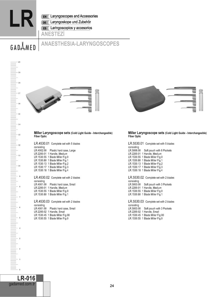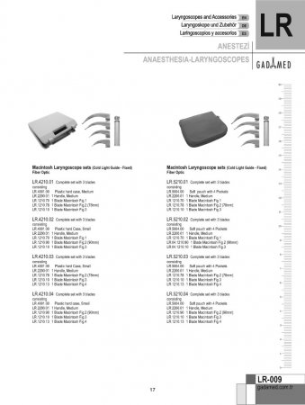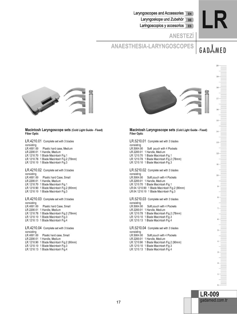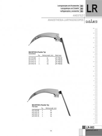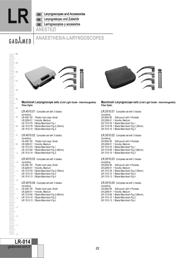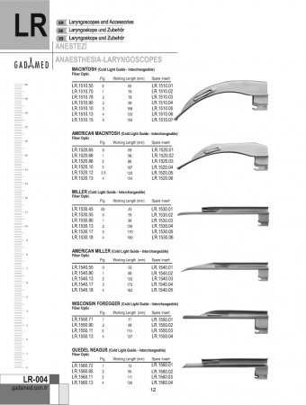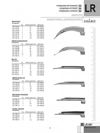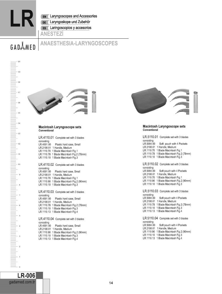 LR.0100.15 8681091002771 Pens magill model 15 cm LR.0100.17 8681091002788 Pens magill model 17 cm LR.0100.20 8681091002795 Pens magill model 20 cm LR.0100.25 8681091002801 Pens magill model 25 cm LR.0110.00 8681091002818 konnektör magill katater seti LR.0114.10 8681091002887 Ağız konnektör magill model10.0mm, #12A LR.0114.15 8681091002894 Ağız konnektör magill model 10.0mm, #12A LR.0114.55 8681091002825 Ağız konnektör magill model í5.5mm, #7 LR.0114.65 8681091002832 Ağız konnektör magill model í6.5mm, #8 LR.0114.75 8681091002849 Ağız konnektör magill model í7.5mm, #9 LR.0114.80 8681091002856 Ağız konnektör magill model í8.0mm, #10 LR.0114.85 8681091002863 Ağız konnektör magill model í8.5mm, #11 LR.0114.95 8681091002870 Ağız konnektör magill model 9.5mm, #12 LR.0116.10 8681091002962 kulak konnektör magill model í10.0mm, #6A LR.0116.15 8681091002979 kulak konnektör magill model í10.5mm, #6B LR.0116.55 8681091002900 Burun konnektör magill model í5.5mm, #1 LR.0116.65 8681091002917 Burun konnektör magill model í6.5mm, #2 LR.0116.75 8681091002924 Burun konnektör magill model í7.5mm, #3 LR.0116.80 8681091002931 Burun konnektör magill model í8.0mm, #4 LR.0116.85 8681091002948 Burun konnektör magill model í8.5mm, #5 LR.0116.95 8681091002955 Burun konnektör magill model í9.5mm, #6 LR.1100.01 8681091000487 Laringoskop konvensiyonel ampul pediatrik LR.1100.02 8681091000494 Laringoskop konvensiyonel ampul yetişkin LR.1110.10 8681091000456 Laringoskop Macintosh konvensiyonel bleyt 110mm Fig.3 LR.1110.13 8681091000463 Laringoskop Macintosh konvensiyonel bleyt 135mm Fig.4 LR.1110.15 8681091000470 Laringoskop Macintosh konvensiyonel bleyt 150mm Fig.5 LR.1110.55 8681091000418 Laringoskop Macintosh konvensiyonel bleyt 55mm Fig.0 LR.1110.70 8681091000425 Laringoskop Macintosh konvensiyonel bleyt 75mm Fig.1 LR.1110.78 8681091000432 Laringoskop Macintosh konvensiyonel bleyt 78mm Fig.2 LR.1110.90 8681091000449 Laringoskop Macintosh konvensiyonel bleyt 90mm Fig.2 LR.1120.10 8681091000531 Laringoskop Amerikan Macintosh konvensiyonel bleyt 107mm Fig.3 LR.1120.12 8681091000548 Laringoskop Amerikan Macintosh konvensiyonel bleyt 123mm Fig.3 LR.1120.13 8681091000555 Laringoskop Amerikan Macintosh konvensiyonel bleyt 134mm Fig.4 LR.1120.65 8681091000500 Laringoskop Amerikan Macintosh konvensiyonel bleyt 65mm Fig.0 LR.1120.66 8681091000517 Laringoskop Amerikan Macintosh konvensiyonel bleyt 66mm Fig.1 LR.1120.86 8681091000524 Laringoskop Amerikan Macintosh konvensiyonel bleyt 86mm Fig.2 LR.1130.13 8681091000593 Laringoskop Miller konvensiyonel bebek bleyt 130mm Fig.2 LR.1130.17 8681091000609 Laringoskop Miller konvensiyonel bebek bleyt 170mm Fig.3 LR.1130.18 8681091000616 Laringoskop Miller konvensiyonel bebek bleyt 180mm Fig.4 LR.1130.45 8681091000562 Laringoskop Miller konvensiyonel bleyt 45mm Fig.00 LR.1130.55 8681091000579 Laringoskop Miller konvensiyonel bebek bleyt 55mm Fig.0 LR.1130.80 8681091000586 Laringoskop Miller konvensiyonel bebek bleyt 80mm Fig.1 LR.1140.13 8681091000623 Laringoskop Amerikan Miller konvensiyonel bleyt 132mm Fig.2 LR.1140.17 8681091000630 Laringoskop Amerikan Miller konvensiyonel bleyt 172mm Fig.3 LR.1140.18 8681091000647 Laringoskop Amerikan Miller konvensiyonel bleyt 182mm Fig.4 LR.1150.11 8681091000678 Laringoskop Wısconsın Foregger konvensiyonel bleyt 110mm Fig.3 LR.1150.13 8681091000685 Laringoskop Wısconsın Foregger konvensiyonel bleyt 137mm Fig.4 LR.1150.71 8681091000654 Laringoskop Wısconsın Foregger konvensiyonel bleyt 71mm Fig.1 LR.1150.90 8681091000661 Laringoskop Wısconsın Foregger konvensiyonel bleyt 90mm Fig.2 LR.1160.11 8681091000715 Laringoskop Guedel Neagus konvensiyonel bleyt 111mm Fig.3 LR.1160.13 8681091000722 Laringoskop Guedel Neagus konvensiyonel bleyt 135mm Fig.4 LR.1160.72 8681091000692 Laringoskop Guedel Neagus konvensiyonel bleyt 72mm Fig.1 LR.1160.95 8681091000708 Laringoskop Guedel Neagus konvensiyonel bleyt 95mm Fig.2 LR.1210.10 8681091000777 Laringoskop machintosh fiberoptik bleyt 108mm Fig.3 LR.1210.13 8681091000784 Laringoskop machintosh fiberoptik bleyt 133mm Fig.4 LR.1210.15 8681091000791 Laringoskop machintosh fiberoptik bleyt 150mm Fig.5 LR.1210.55 8681091000739 Laringoskop machintosh fiberoptik bleyt 55mm Fig.0 LR.1210.70 8681091000746 Laringoskop machintosh fiberoptik bleyt 70mm Fig.1 LR.1210.78 8681091000753 Laringoskop machintosh fiberoptik bleyt 78mm Fig.2 LR.1210.90 8681091000760 Laringoskop machintosh fiberoptik bleyt 90mm Fig.2 LR.1220.10 8681091000838 Laringoskop machintosh fiberoptik bleyt 107mm Fig.3 LR.1220.12 8681091000845 Laringoskop machintosh fiberoptik bleyt 123mm Fig.3.5 LR.1220.13 8681091000852 Laringoskop machintosh fiberoptik bleyt 134mm Fig.4 LR.1220.65 8681091000807 Laringoskop machintosh fiberoptik bleyt 65mm Fig.0 LR.1220.66 8681091000814 Laringoskop machintosh fiberoptik bleyt 66mm Fig.1 LR.1220.86 8681091000821 Laringoskop machintosh fiberoptik bleyt 86mm Fig.2 LR.1230.13 8681091000890 Laringoskop miller fiberoptik bleyt 130mm Fig.2 LR.1230.17 8681091000906 Laringoskop miller fiberoptik bleyt 170mm Fig.3 LR.1230.18 8681091000913 Laringoskop miller fiberoptik bleyt 180mm Fig.4 LR.1230.45 8681091000869 Laringoskop miller fiberoptik bleyt 45mm Fig.00 LR.1230.55 8681091000876 Laringoskop miller fiberoptik bleyt 55mm Fig.0 LR.1230.80 8681091000883 Laringoskop miller fiberoptik bleyt 80mm Fig.1 LR.1240.13 8681091000944 Laringoskop Amerikan miller fiberoptik bleyt 132mm Fig.2 LR.1240.17 8681091000951 Laringoskop Amerikan miller fiberoptik bleyt 172mm Fig.3 LR.1240.18 8681091000968 Laringoskop Amerikan miller fiberoptik bleyt 182mm Fig.4 LR.1240.55 8681091000920 Laringoskop Amerikan miller fiberoptik bleyt 55mm Fig.0 LR.1240.80 8681091000937 Laringoskop Amerikan miller fiberoptik bleyt 80mm Fig.1 LR.1250.11 8681091000999 Laringoskop Wisconsin model fiberoptik bleyt 110mm Fig.3 LR.1250.13 8681091001002 Laringoskop Wisconsin model fiberoptik bleyt 137mm Fig.4 LR.1250.71 868109100097