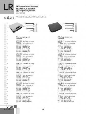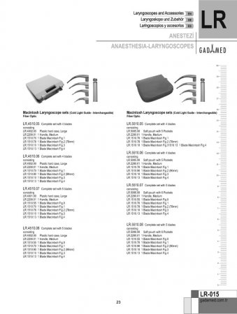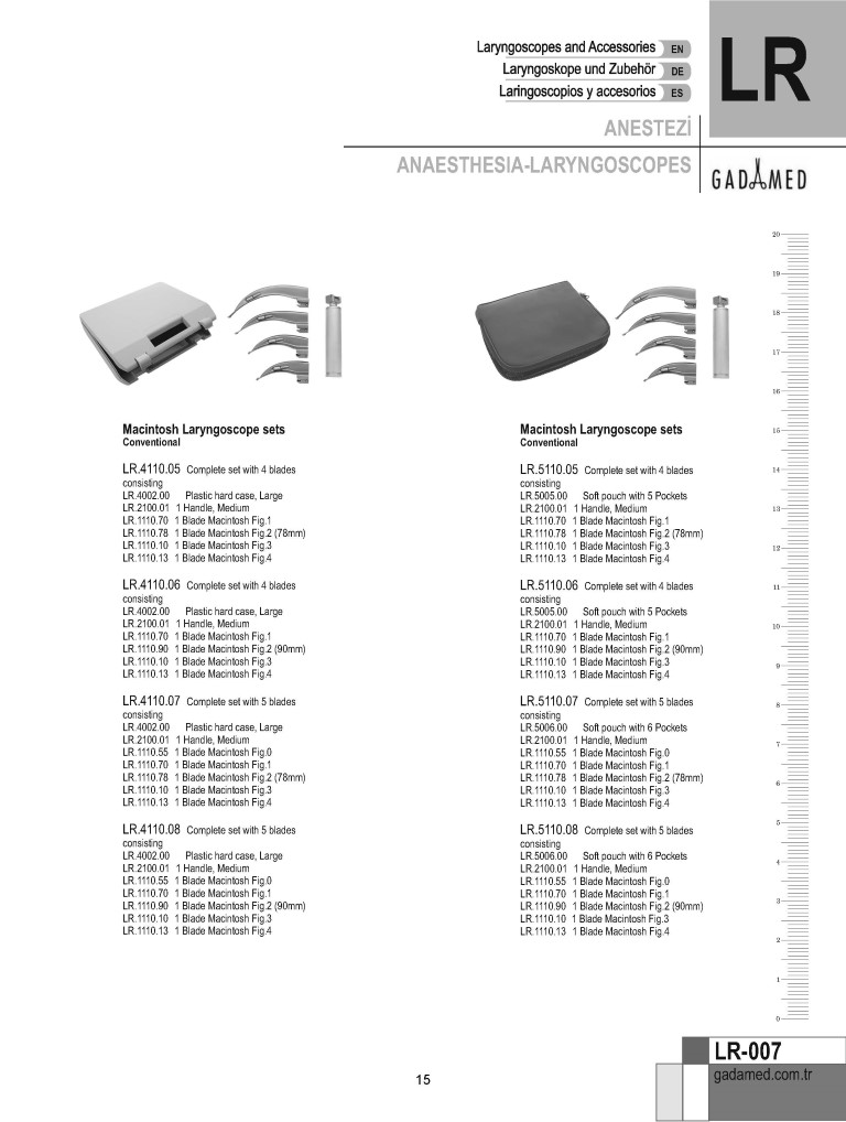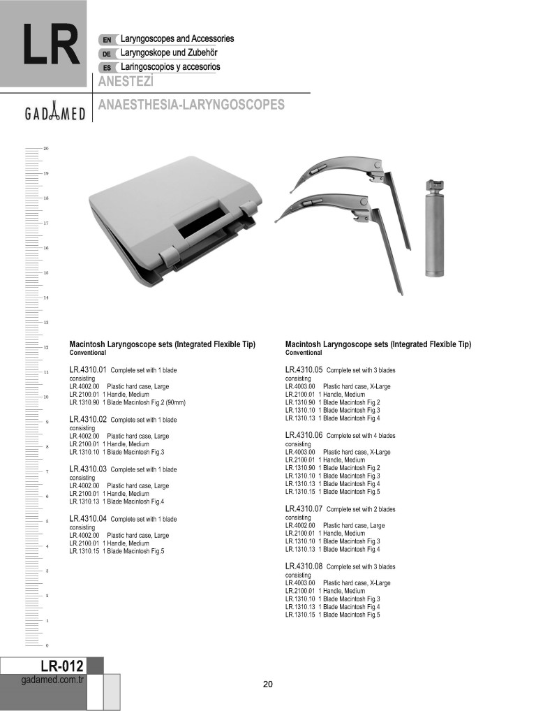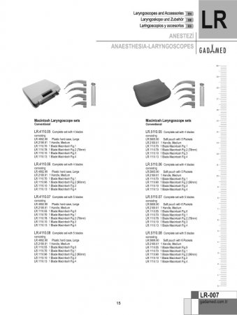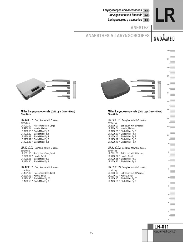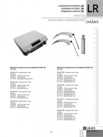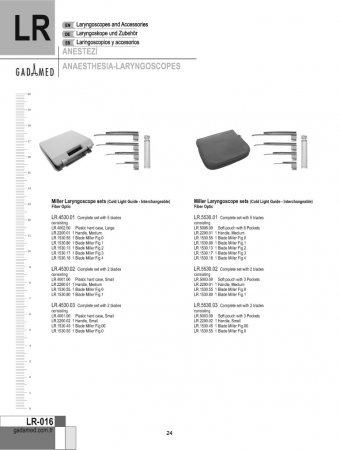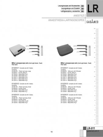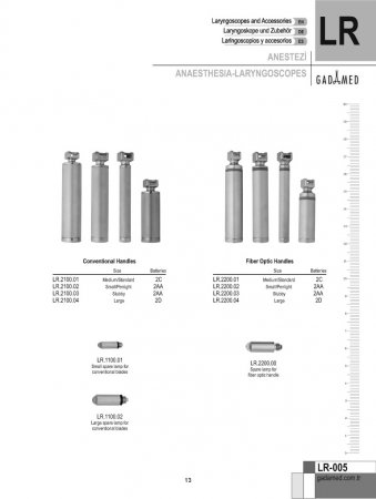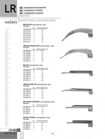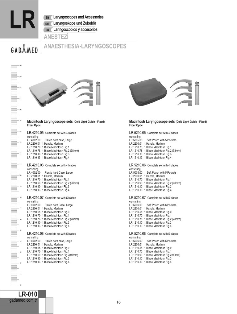 LR.0100.15 8681091002771 Pens magill model 15 cm LR.0100.17 8681091002788 Pens magill model 17 cm LR.0100.20 8681091002795 Pens magill model 20 cm LR.0100.25 8681091002801 Pens magill model 25 cm LR.0110.00 8681091002818 konnektör magill katater seti LR.0114.10 8681091002887 Ağız konnektör magill model10.0mm, #12A LR.0114.15 8681091002894 Ağız konnektör magill model 10.0mm, #12A LR.0114.55 8681091002825 Ağız konnektör magill model í5.5mm, #7 LR.0114.65 8681091002832 Ağız konnektör magill model í6.5mm, #8 LR.0114.75 8681091002849 Ağız konnektör magill model í7.5mm, #9 LR.0114.80 8681091002856 Ağız konnektör magill model í8.0mm, #10 LR.0114.85 8681091002863 Ağız konnektör magill model í8.5mm, #11 LR.0114.95 8681091002870 Ağız konnektör magill model 9.5mm, #12 LR.0116.10 8681091002962 kulak konnektör magill model í10.0mm, #6A LR.0116.15 8681091002979 kulak konnektör magill model í10.5mm, #6B LR.0116.55 8681091002900 Burun konnektör magill model í5.5mm, #1 LR.0116.65 8681091002917 Burun konnektör magill model í6.5mm, #2 LR.0116.75 8681091002924 Burun konnektör magill model í7.5mm, #3 LR.0116.80 8681091002931 Burun konnektör magill model í8.0mm, #4 LR.0116.85 8681091002948 Burun konnektör magill model í8.5mm, #5 LR.0116.95 8681091002955 Burun konnektör magill model í9.5mm, #6 LR.1100.01 8681091000487 Laringoskop konvensiyonel ampul pediatrik LR.1100.02 8681091000494 Laringoskop konvensiyonel ampul yetişkin LR.1110.10 8681091000456 Laringoskop Macintosh konvensiyonel bleyt 110mm Fig.3 LR.1110.13 8681091000463 Laringoskop Macintosh konvensiyonel bleyt 135mm Fig.4 LR.1110.15 8681091000470 Laringoskop Macintosh konvensiyonel bleyt 150mm Fig.5 LR.1110.55 8681091000418 Laringoskop Macintosh konvensiyonel bleyt 55mm Fig.0 LR.1110.70 8681091000425 Laringoskop Macintosh konvensiyonel bleyt 75mm Fig.1 LR.1110.78 8681091000432 Laringoskop Macintosh konvensiyonel bleyt 78mm Fig.2 LR.1110.90 8681091000449 Laringoskop Macintosh konvensiyonel bleyt 90mm Fig.2 LR.1120.10 8681091000531 Laringoskop Amerikan Macintosh konvensiyonel bleyt 107mm Fig.3 LR.1120.12 8681091000548 Laringoskop Amerikan Macintosh konvensiyonel bleyt 123mm Fig.3 LR.1120.13 8681091000555 Laringoskop Amerikan Macintosh konvensiyonel bleyt 134mm Fig.4 LR.1120.65 8681091000500 Laringoskop Amerikan Macintosh konvensiyonel bleyt 65mm Fig.0 LR.1120.66 8681091000517 Laringoskop Amerikan Macintosh konvensiyonel bleyt 66mm Fig.1 LR.1120.86 8681091000524 Laringoskop Amerikan Macintosh konvensiyonel bleyt 86mm Fig.2 LR.1130.13 8681091000593 Laringoskop Miller konvensiyonel bebek bleyt 130mm Fig.2 LR.1130.17 8681091000609 Laringoskop Miller konvensiyonel bebek bleyt 170mm Fig.3 LR.1130.18 8681091000616 Laringoskop Miller konvensiyonel bebek bleyt 180mm Fig.4 LR.1130.45 8681091000562 Laringoskop Miller konvensiyonel bleyt 45mm Fig.00 LR.1130.55 8681091000579 Laringoskop Miller konvensiyonel bebek bleyt 55mm Fig.0 LR.1130.80 8681091000586 Laringoskop Miller konvensiyonel bebek bleyt 80mm Fig.1 LR.1140.13 8681091000623 Laringoskop Amerikan Miller konvensiyonel bleyt 132mm Fig.2 LR.1140.17 8681091000630 Laringoskop Amerikan Miller konvensiyonel bleyt 172mm Fig.3 LR.1140.18 8681091000647 Laringoskop Amerikan Miller konvensiyonel bleyt 182mm Fig.4 LR.1150.11 8681091000678 Laringoskop Wısconsın Foregger konvensiyonel bleyt 110mm Fig.3 LR.1150.13 8681091000685 Laringoskop Wısconsın Foregger konvensiyonel bleyt 137mm Fig.4 LR.1150.71 8681091000654 Laringoskop Wısconsın Foregger konvensiyonel bleyt 71mm Fig.1 LR.1150.90 8681091000661 Laringoskop Wısconsın Foregger konvensiyonel bleyt 90mm Fig.2 LR.1160.11 8681091000715 Laringoskop Guedel Neagus konvensiyonel bleyt 111mm Fig.3 LR.1160.13 8681091000722 Laringoskop Guedel Neagus konvensiyonel bleyt 135mm Fig.4 LR.1160.72 8681091000692 Laringoskop Guedel Neagus konvensiyonel bleyt 72mm Fig.1 LR.1160.95 8681091000708 Laringoskop Guedel Neagus konvensiyonel bleyt 95mm Fig.2 LR.1210.10 8681091000777 Laringoskop machintosh fiberoptik bleyt 108mm Fig.3 LR.1210.13 8681091000784 Laringoskop machintosh fiberoptik bleyt 133mm Fig.4 LR.1210.15 8681091000791 Laringoskop machintosh fiberoptik bleyt 150mm Fig.5 LR.1210.55 8681091000739 Laringoskop machintosh fiberoptik bleyt 55mm Fig.0 LR.1210.70 8681091000746 Laringoskop machintosh fiberoptik bleyt 70mm Fig.1 LR.1210.78 8681091000753 Laringoskop machintosh fiberoptik bleyt 78mm Fig.2 LR.1210.90 8681091000760 Laringoskop machintosh fiberoptik bleyt 90mm Fig.2 LR.1220.10 8681091000838 Laringoskop machintosh fiberoptik bleyt 107mm Fig.3 LR.1220.12 8681091000845 Laringoskop machintosh fiberoptik bleyt 123mm Fig.3.5 LR.1220.13 8681091000852 Laringoskop machintosh fiberoptik bleyt 134mm Fig.4 LR.1220.65 8681091000807 Laringoskop machintosh fiberoptik bleyt 65mm Fig.0 LR.1220.66 8681091000814 Laringoskop machintosh fiberoptik bleyt 66mm Fig.1 LR.1220.86 8681091000821 Laringoskop machintosh fiberoptik bleyt 86mm Fig.2 LR.1230.13 8681091000890 Laringoskop miller fiberoptik bleyt 130mm Fig.2 LR.1230.17 8681091000906 Laringoskop miller fiberoptik bleyt 170mm Fig.3 LR.1230.18 8681091000913 Laringoskop miller fiberoptik bleyt 180mm Fig.4 LR.1230.45 8681091000869 Laringoskop miller fiberoptik bleyt 45mm Fig.00 LR.1230.55 8681091000876 Laringoskop miller fiberoptik bleyt 55mm Fig.0 LR.1230.80 8681091000883 Laringoskop miller fiberoptik bleyt 80mm Fig.1 LR.1240.13 8681091000944 Laringoskop Amerikan miller fiberoptik bleyt 132mm Fig.2 LR.1240.17 8681091000951 Laringoskop Amerikan miller fiberoptik bleyt 172mm Fig.3 LR.1240.18 8681091000968 Laringoskop Amerikan miller fiberoptik bleyt 182mm Fig.4 LR.1240.55 8681091000920 Laringoskop Amerikan miller fiberoptik bleyt 55mm Fig.0 LR.1240.80 8681091000937 Laringoskop Amerikan miller fiberoptik bleyt 80mm Fig.1 LR.1250.11 8681091000999 Laringoskop Wisconsin model fiberoptik bleyt 110mm Fig.3 LR.1250.13 8681091001002 Laringoskop Wisconsin model fiberoptik bleyt 137mm Fig.4 LR.1250.71 868109100097