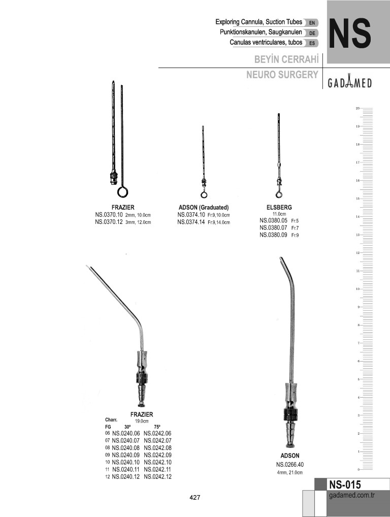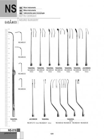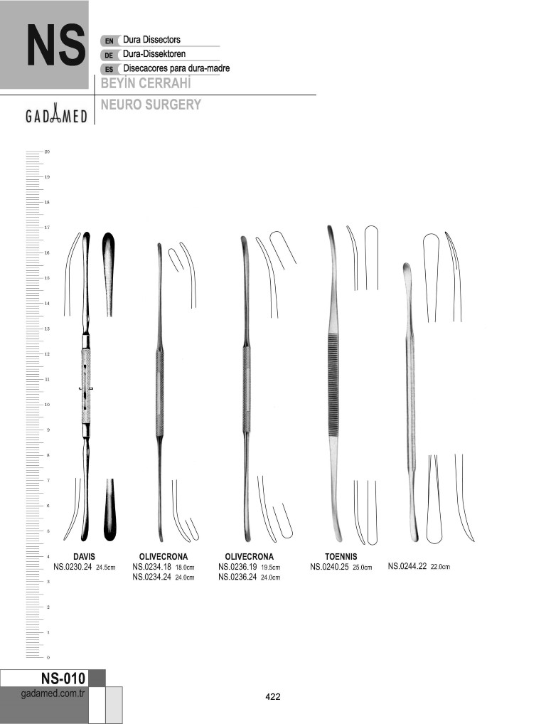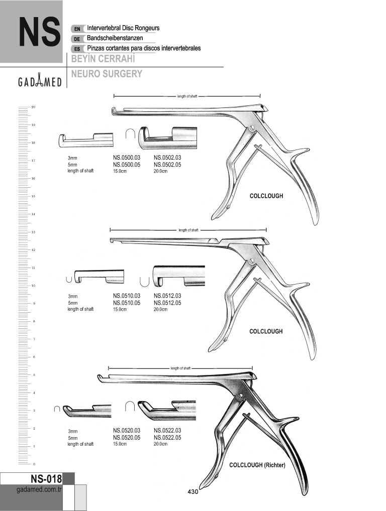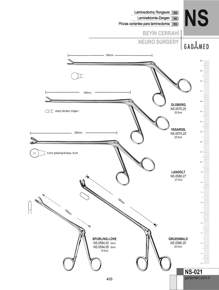 NS.0010.16 8681091050857 RANEY KLİPS UYGULAMA SÖKME FORSEPSİ 16.5CM NS.0012.16 8681091050864 RANEY KLİPS UYGULAMA SÖKME FORSEPSİ 16.5CM NS.0020.20 8681091050871 DAHLGREN KRANİYEL RONGÖR FORSEPSİ 20CM, 2 KANCALI NS.0026.21 8681091050888 DE VİLBİSS KRANİYEL RONGÖR 21CM, BİR ADET BÜYÜK NS.0030.33 8681091050895 DE MARTEL GİGLİ TESTERE KILAVUZU/KONDÜKTÖR 33CM NS.0040.00 8681091050901 GİGLİ TESTERE SAPI (ÇİFT) NS.0042.30 8681091050918 OLIVECRONA GIGLI TESTERE TELİ X2 BURGU 30CM NS.0042.40 8681091050925 OLIVECRONA GIGLI TESTERE TELİ X2 BURGU 40CM NS.0042.50 8681091050932 OLIVECRONA GIGLI TESTERE TELİ X2 BURGU 50CM NS.0042.60 8681091050949 OLIVECRONA GIGLI TESTERE TELİ X2 BURGU 60CM NS.0042.70 8681091050956 OLIVECRONA GIGLI TESTERE TELİ X2 BURGU 70CM NS.0043.30 8681091050963 OLIVECRONA GIGLI TESTERE TELİ X3 BURGU 30CM NS.0043.40 8681091050970 OLIVECRONA GIGLI TESTERE TELİ X3 BURGU 40CM NS.0043.50 8681091050987 OLIVECRONA GIGLI TESTERE TELİ X3 BURGU 50CM NS.0043.60 8681091050994 OLIVECRONA GIGLI TESTERE TELİ X3 BURGU 60CM NS.0043.70 8681091051007 OLIVECRONA GIGLI TESTERE TELİ X3 BURGU 70CM NS.0044.30 8681091051014 OLIVECRONA GIGLI TESTERE TELİ X4 BURGU 30CM NS.0044.40 8681091051021 OLIVECRONA GIGLI TESTERE TELİ X4 BURGU 40CM NS.0044.50 8681091051038 OLIVECRONA GIGLI TESTERE TELİ X4 BURGU 50CM NS.0044.60 8681091051045 OLIVECRONA GIGLI TESTERE TELİ X4 BURGU 60CM NS.0044.70 8681091051052 OLIVECRONA GIGLI TESTERE TELİ X4 BURGU 70CM NS.0050.01 8681091051069 CRUTCHFIELD TRAKSİYON TUTUCU KÜÇÜK NS.0050.02 8681091051076 CRUTCHFIELD TRAKSİYON TUTUCU BÜYÜK NS.0050.04 8681091051083 CRUTCHFIELD MATKAP UCU 3.5MM NS.0050.05 8681091051090 CRUTCHFIELD MATKAP UCU 5.0MM NS.0054.00 8681091051106 SERVİKAL TRAKSİYON TUTUCU BÜYÜK NS.0054.10 8681091051113 YALNIZCA TRAKSİYON TUTUCULARI İÇİN YEDEK PİN NS.0060.14 8681091051120 Olivecrona - Toennis Klips Forsepsi 14cm NS.0070.15 8681091051137 Mckenzie Klips Uygulama Forsepsi 15cm NS.0070.19 8681091051144 Mckenzie Klips Uygulama Forsepsi 19cm NS.0072.15 8681091051151 Mckenzie Klips Uygulama Forsepsi 15cm NS.0072.19 8681091051168 Mckenzie Klips Uygulama Forsepsi 19cm NS.0080.23 8681091051175 Smithwick Klips Uygulama Forsepsi 23cm NS.0080.26 8681091051182 Smithwick Klips Uygulama Forsepsi 26cm NS.0082.23 8681091051199 Sweet Klips Uygulama Forsepsi 23cm NS.0082.25 8681091051205 Sweet Klips Uygulama Forsepsi 26cm NS.0090.10 8681091051212 Cloward Laminia Ayırıcı, vida ile 110mm, 15cm NS.0090.30 8681091051229 Cloward Laminia Ayırıcı, vida ile 30mm, 15cm NS.0090.50 8681091051236 Cloward Laminia Ayırıcı, vida ile 50mm, 15cm NS.0090.70 8681091051243 Cloward Laminia Ayırıcı, vida ile 70mm, 15cm NS.0090.90 8681091051250 Cloward Laminia Ayırıcı, vida ile 90mm, 15cm NS.0092.10 8681091051267 Cloward Laminia Ayırıcı kam/rat. 110mm, 17cm NS.0092.30 8681091051274 Cloward Laminia Ayırıcı kam/rat. 30mm, 17cm NS.0092.50 8681091051281 Cloward Laminia Ayırıcı kam/rat. 50mm, 17cm NS.0092.70 8681091051298 Cloward Laminia Ayırıcı kam/rat. 70mm, 17cm NS.0092.90 8681091051304 Cloward Laminia Ayırıcı kam/rat. 90mm, 17cm NS.0096.16 8681091051311 Cloward Lamina Ayırıcı 16cm NS.0100.16 8681091051328 Inge Lamina Ayırıcı 17cm NS.0102.24 8681091051335 Inge Laminektomi Ayırıcı, 50mm, 24cm NS.0104.27 8681091051342 Inge Lamina Ayırıcı, 12mm uç, 27cm NS.0106.24 8681091051359 Inge Laminektomi Ayırıcı çene 10x20mm, 24cm NS.0108.24 8681091051366 Inge Laminektomi Ayırıcı çene 15x20mm, 24cm NS.0116.28 8681091051373 Inge Laminektomi Ayırıcı çene 22X15mm, 24cm NS.0120.19 8681091051380 LOVE SİNİR KÖKÜ EKARTÖRÜ DÜZ 19CM NS.0122.19 8681091051397 LOVE SİNİR KÖKÜ EKARTÖRÜ DÜZ 19CM 45 Ø AÇILI NS.0124.19 8681091051403 LOVE SİNİR KÖKÜ EKARTÖRÜ DÜZ 19CM 90 Ø AÇILI NS.0130.20 8681091051410 SCOVILLE SİNİR KÖKÜ EKARTÖRÜ AÇILI 7MM, 20CM NS.0134.21 8681091051427 MARTIN SİNİR KÖKÜ EKARTÖRÜ AÇILI 21CM NS.0140.21 8681091051434 KASPAR LOVE SİNİR EKARTÖRÜ 21.00CM NS.0144.06 8681091051441 CASPAR SİNİR KÖKÜ EKARTÖRÜ AÇILI 6MM, 24CM NS.0144.08 8681091051458 CASPAR SİNİR KÖKÜ EKARTÖRÜ AÇILI 8MM, 24CM NS.0144.10 8681091051465 CASPAR SİNİR KÖKÜ EKARTÖRÜ AÇILI 10MM, 24CM NS.0150.24 8681091051472 HOLSHER SİNİR KÖKÜ EKARTÖRÜ KAVİSLİ 7MM, 24CM NS.0154.23 8681091051489 SCOVILLE SİNİR KÖKÜ EKARTÖRÜ DÜZ 8MM, 23CM NS.0160.14 8681091051496 CUSHING DURA KANCALI KESKİN UÇ Í 2MM, 14CM NS.0164.13 8681091051502 FRAZIER KANCALI TEK KESKİN 13CM NS.0164.18 8681091051519 FRAZIER KANCALI TEK KESKİN 18CM NS.0166.13 8681091051526 FRAZIER DURA KANCALI KÜNT 13CM NS.0166.18 8681091051533 FRAZIER DURA KANCALI KÜNT 18CM NS.0170.13 8681091051540 LAHEY DURA KANCA 13CM NS.0174.15 8681091051557 TOENNIS DURA KANCA 15CM NS.0180.16 8681091051564 GRAHAM SİNİR KANCASI KÜNT 16.5CM NS.0184.18 8681091051571 SACHS SİNİR KANCASI 18.5CM NS.0190.20 8681091051588 DANDY SİNİR KANCASI 20CM NS.0192.20 8681091051595 DANDY SİNİR KANCASI 20CM NS.0194.20 8681091051601 DANDY SİNİR KANCASI 20CM NS.0200.22 8681091051618 HOEN DURA KANCALI KÜNT 22CM NS.0204.20 8681091051625 ADSON SİNİR KANCASI KÜNT 20CM NS.0206.20 8681091051632 ADSON SİNİR KANCASI KESKİN 20CM NS.0210.30 8681091051649 SCOVILLE AÇILI KANCA ve DİSSEKTÖR D/E 30CM NS.0212.30 8681091051656 SCOVILLE KAVİSLİ KANCA ve DİSSEKTÖR D/E 30CM NS.0216.29 8681091051663 SMITHWICJ SİNİR KANCASI KÜÇÜK 29CM NS.0220.19 8681091051670 CUSHING SİNİR KANCASI KÜÇÜK 19CM NS.0220.28 8681091051687 CUSHING SİNİR KANCASI KÜÇÜK 28CM NS.0222.19 8681091051694 CUSHING SİNİR KANCASI BÜYÜK 19CM NS.0222.28 8681091051700 CUSHING SİNİR KANCASI BÜYÜK 28CM NS.0226.17 8681091051717 SMITHWICK SİNİR KANCASI 17CM NS.0226.21 8681091051724 SMITHWICK SİNİR KANCASI 21CM NS.0230.24 8681091051731 DAVIS DURA DİSSEKTÖR ÇİFTE 24CM NS.0234.18 8681091051748 OLIVECRONA DURA DİSSEKTÖR D/E 18CM NS.0234.24 8681091051755 OLIVECRONA DURA DİSSE