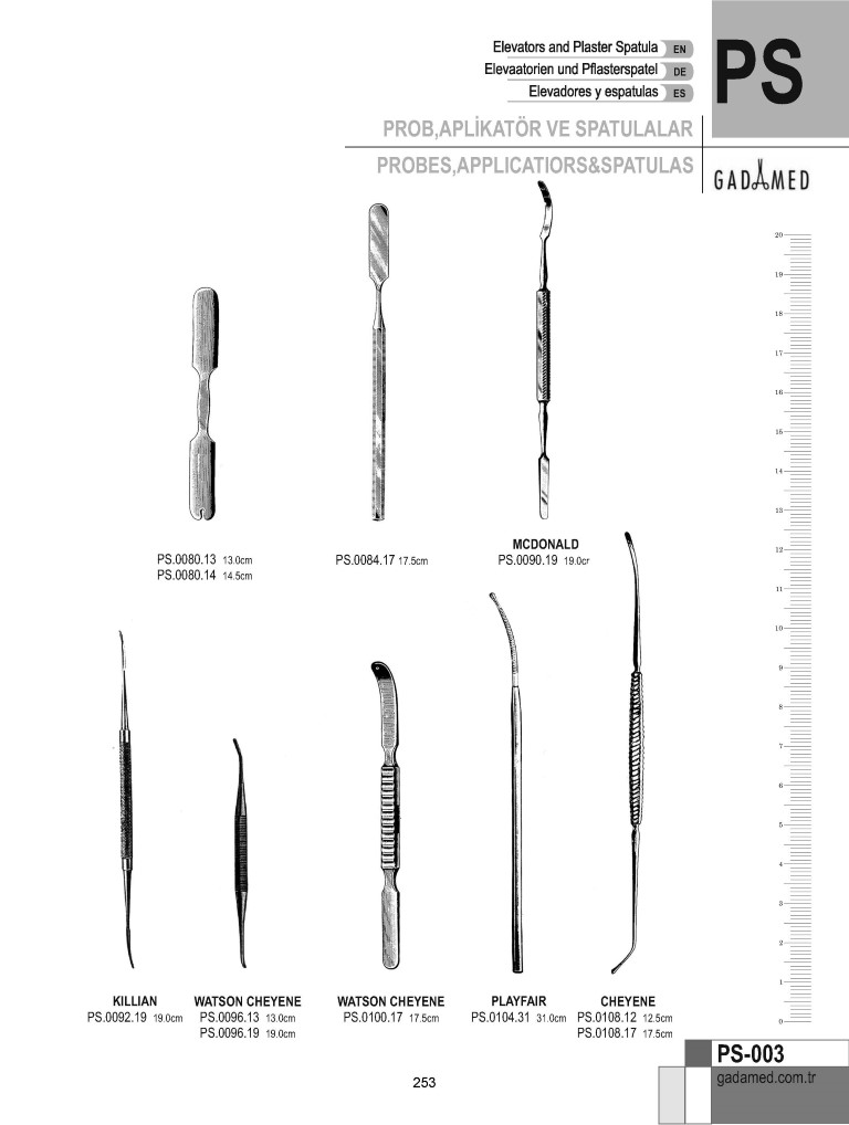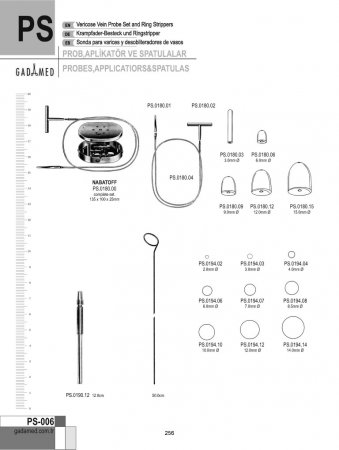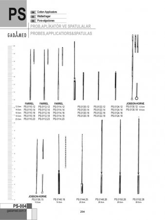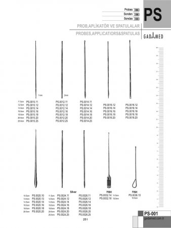 PS.0010.11 8681091033089 TOMURCUKLU PROB. D/E 1MM, 11.5CM PS.0010.12 8681091033096 TOMURCUKLU PROB. D/E 1MM, 12.5CM PS.0010.14 8681091033102 TOMURCUKLU PROB. D/E 1MM, 14CM PS.0010.16 8681091033119 TOMURCUKLU PROB. D/E 1MM, 16CM PS.0010.18 8681091033126 TOMURCUKLU PROB. D/E 1MM, 18CM PS.0010.20 8681091033133 TOMURCUKLU PROB. D/E 1MM, 20CM PS.0010.25 8681091033140 TOMURCUKLU PROB. D/E 1MM, 25CM PS.0012.11 8681091033157 TOMURCUKLU PROB. D/E 2MM, 11.5CM PS.0012.12 8681091033164 TOMURCUKLU PROB. D/E 2MM, 12.5CM PS.0012.14 8681091033171 TOMURCUKLU PROB. D/E 2MM, 14CM PS.0012.16 8681091033188 TOMURCUKLU PROB. D/E 2MM, 16CM PS.0012.18 8681091033195 TOMURCUKLU PROB. D/E 2MM, 18CM PS.0012.20 8681091033201 TOMURCUKLU PROB. D/E 2MM, 20CM PS.0012.25 8681091033218 TOMURCUKLU PROB. D/E 2MM, 25CM PS.0014.11 8681091033225 DÜZ UCU GÖZ HALKALI DÜĞMELİ PROB. 2MM, 11.5CM PS.0014.12 8681091033232 DÜZ UCU GÖZ HALKALI DÜĞMELİ PROB. 2MM, 12.5CM PS.0014.14 8681091033249 DÜZ UCU GÖZ HALKALI DÜĞMELİ PROB. 2MM, 14CM PS.0014.16 8681091033256 DÜZ UCU GÖZ HALKALI DÜĞMELİ PROB. 2MM, 16CM PS.0014.18 8681091033263 DÜZ UCU GÖZ HALKALI DÜĞMELİ PROB. 2MM, 18CM PS.0014.20 8681091033270 DÜZ UCU GÖZ HALKALI DÜĞMELİ PROB. 2MM, 20CM PS.0014.25 8681091033287 DÜZ UCU GÖZ HALKALI DÜĞMELİ PROB. 2MM, 25CM PS.0016.12 8681091033294 MIZRAK UÇLU PROB. 2MM, 13CM PS.0016.14 8681091033300 MIZRAK UÇLU PROB. 2MM, 14.5CM PS.0016.16 8681091033317 MIZRAK UÇLU PROB. 2MM, 16CM PS.0016.18 8681091033324 MIZRAK UÇLU PROB. 2MM, 18CM PS.0016.20 8681091033331 MIZRAK UÇLU PROB. 2MM, 20CM PS.0018.12 8681091033348 KESKİLİ PROB 2MM, 13CM PS.0018.14 8681091033355 KESKİLİ PROB 2MM, 14.5CM PS.0018.16 8681091033362 KESKİLİ PROB 2MM, 16CM PS.0018.18 8681091033379 KESKİLİ PROB 2MM, 18CM PS.0018.20 8681091033386 KESKİLİ PROB 2MM, 20CM PS.0020.10 8681091033393 MIRTLE YAPRAK PROB 2MM, 10.5CM PS.0020.13 8681091033409 MIRTLE YAPRAK PROB 2MM, 13CM PS.0020.14 8681091033416 MIRTLE YAPRAK PROB 2MM, 14.5CM PS.0020.16 8681091033423 MIRTLE YAPRAK PROB 2MM, 16CM PS.0020.18 8681091033430 MIRTLE YAPRAK PROB 2MM, 18CM PS.0020.20 8681091033447 MIRTLE YAPRAK PROB 2MM, 20CM PS.0024.11 8681091033454 GÜMÜŞ PROB DÜĞMELİ D/E 2MM, 11.5CM PS.0024.12 8681091033461 GÜMÜŞ PROB DÜĞMELİ D/E 2MM, 13CM PS.0024.14 8681091033478 GÜMÜŞ PROB DÜĞMELİ D/E 2MM, 14.5CM PS.0024.16 8681091033485 GÜMÜŞ PROB DÜĞMELİ D/E 2MM, 16CM PS.0024.18 8681091033492 GÜMÜŞ PROB DÜĞMELİ D/E 2MM, 18CM PS.0024.20 8681091033508 GÜMÜŞ PROB DÜĞMELİ D/E 2MM, 20CM PS.0024.25 8681091033515 GÜMÜŞ PROB DÜĞMELİ D/E 2MM, 25CM PS.0026.11 8681091033539 GÖZLÜ PROB, GÜMÜŞ KAPLAMA NİKEL 2MM, 11.5CM PS.0026.12 8681091033546 GÖZLÜ PROB, GÜMÜŞ KAPLAMA NİKEL 2MM, 13CM PS.0026.14 8681091033553 GÖZLÜ PROB, GÜMÜŞ KAPLAMA NİKEL 2MM, 14CM PS.0026.16 8681091033560 GÖZLÜ PROB, GÜMÜŞ KAPLAMA NİKEL 2MM, 16CM PS.0026.18 8681091033577 GÖZLÜ PROB, GÜMÜŞ KAPLAMA NİKEL 2MM, 18CM PS.0026.20 8681091033584 GÖZLÜ PROB, GÜMÜŞ KAPLAMA NİKEL 2MM, 20CM PS.0026.25 8681091033591 GÖZLÜ PROB, GÜMÜŞ KAPLAMA NİKEL 2MM, 25CM PS.0032.14 8681091033607 FISCH PROB DİREKTÖRÜ 2MM, 14.5CM PS.0032.18 8681091033614 FISCH PROB DİREKTÖRÜ 2MM, 18CM PS.0036.10 8681091033621 İLMİK TUTAMAÇLI STACKE PROB 10.5CM PS.0040.11 8681091033638 OLUKLU DİREKTÖR ve DİL BAĞI 11.5CM PS.0040.12 8681091033645 OLUKLU DİREKTÖR 12.5CM PS.0040.14 8681091033652 OLUKLU DİREKTÖR 14CM PS.0040.16 8681091033669 OLUKLU DİREKTÖR 16CM PS.0040.18 8681091033676 OLUKLU DİREKTÖR 18CM PS.0040.20 8681091033683 OLUKLU DİREKTÖR 20CM PS.0042.11 8681091033690 PROBLU DİL BAĞI 11.5CM PS.0042.12 8681091033706 PROBLU OLUKLU DİREKTÖR 13CM PS.0042.14 8681091033713 DÜĞMELİ PROB İLE OLUKLU DİREKTÖR 14CM PS.0042.16 8681091033720 PROBLU OLUKLU DİREKTÖR 16CM PS.0042.18 8681091033737 PROBLU OLUKLU DİREKTÖR 18CM PS.0042.20 8681091033744 PROBLU OLUKLU DİREKTÖR 20CM PS.0050.14 8681091033751 DOYEN OLUKLU DİREKTÖR KAVİSLİ 14CM PS.0054.16 8681091033768 NELATON DİL BAĞI PROB KAVİSLİ 16CM PS.0056.12 8681091033775 SPATÜLLÜ DİREKTÖR 11.5CM PS.0060.13 8681091033782 KRONECKER SONDA 13CM PS.0064.15 8681091033799 JOHNS HOPKİNS SONDA 15CM PS.0068.12 8681091033805 ROSER DİREKTÖR 12.5CM PS.0072.17 8681091033812 SYME ANEVRİZMA İĞNESİ PS.0076.17 8681091033829 ANEVRİZMA İĞNESİ PS.0080.13 8681091033836 PLASTER SPATULA 13CM UZUN PS.0080.14 8681091033843 PLASTER SPATULA 14.5CM UZUN PS.0084.17 8681091033850 PLASTER SPATULA 17.5CM PS.0090.19 8681091033867 MCDOWNSALD KALDIRICI, ÇİFT 19CM PS.0092.19 8681091033874 KILLIAN SEPTUM KALDIRICI SH/BL D/E 18CM PS.0096.13 8681091033881 ELEVATOR WATSON CHEYNE MODEL , ÇİFT 2X2.5MM, 13CM PS.0096.19 8681091033898 ELEVATOR WATSON CHEYNE MODEL, ÇİFT 2X2.7MM, 19CM PS.0100.17 8681091033904 ELEVATOR WATSON CHEYNE MODEL, ÇİFT 17.5CM PS.0104.31 8681091033911 PLAYFAİR REKTOSKOP İÇİN PAMUK TAŞIYICI 31CM PS.0108.12 8681091033928 CHEYNE PROB ve KALDIRICI D/E 12.5CM PS.0108.17 8681091033935 CHEYNE PROB ve KALDIRICI D/E 17.5CM PS.0110.12 8681091033942 FARREL YİVLİ PAMUK APLİKATÖR 12CM PS.0110.14 8681091033959 FARREL YİVLİ PAMUK APLİKATÖR 14CM PS.0110.16 8681091033966 FARREL YİVLİ PAMUK APLİKATÖR 16CM PS.0110.18 8681091033973 FARREL YİVLİ PAMUK APLİKATÖR 18CM PS.0110.23 8681091033980 FARREL YİVLİ PAMUK APLİKATÖR 23CM PS.0112.12 8681091033997 FARREL PAMUK APLİKATÖRÜ TROCAR NOKTALI 12CM PS.0112.14 8681091034000 FARREL PAMUK APLİKATÖRÜ TROCAR NOKTALI 14CM PS.0112.16 8681091034017 FARREL PAMUK APLİKATÖRÜ TROCAR NOKTALI 16CM PS.0112.18 8681091034024 FARREL PAMUK APLİKATÖRÜ TROCAR NOKTALI 18CM PS.0112.23 8681091034031 FARREL PAMUK APLİKATÖRÜ TROCAR NOKTALI 23CM PS.0114.12 8681091034048 FARREL PAMUK APLİKATÖRÜ ÜÇGEN ŞEKİLLİ 12CM PS.0114.14 8681091034055 FARREL PAMUK APLİKATÖRÜ ÜÇGEN ŞEKİLLİ 14CM PS.0114.16 8681091034062 FARREL PAMUK APLİKATÖRÜ ÜÇGEN ŞEKİLLİ 16CM PS.0114.18 86810910