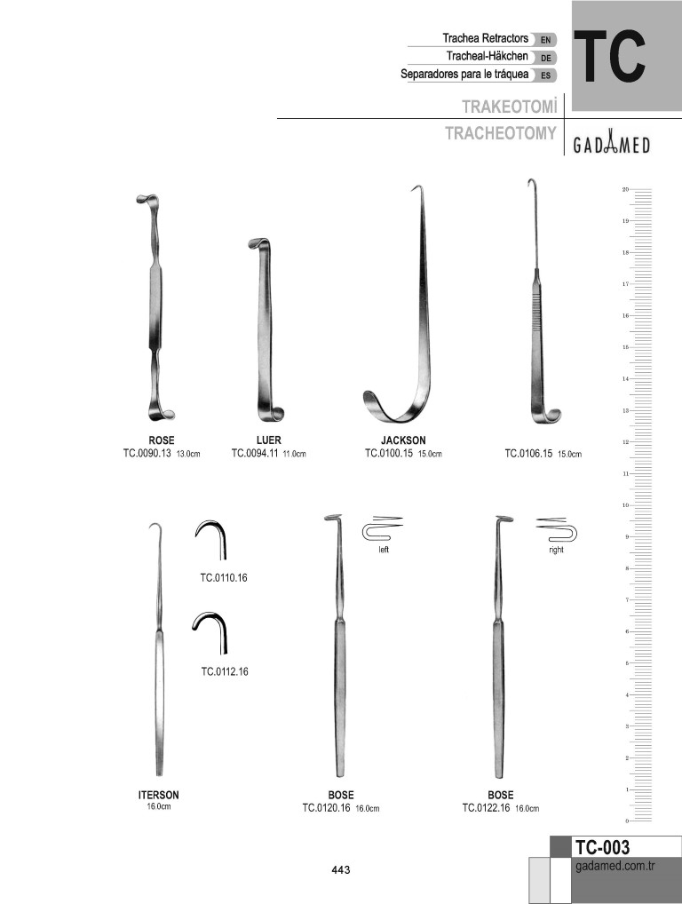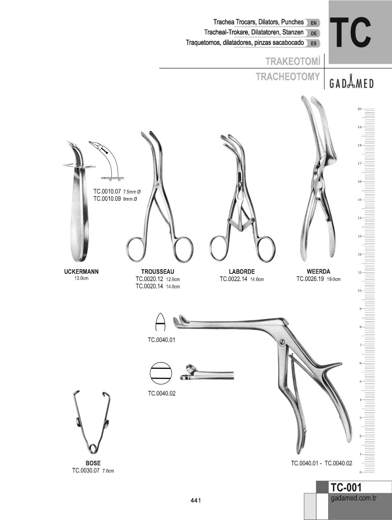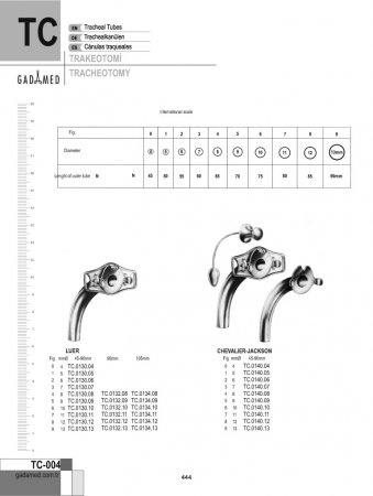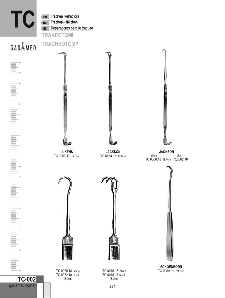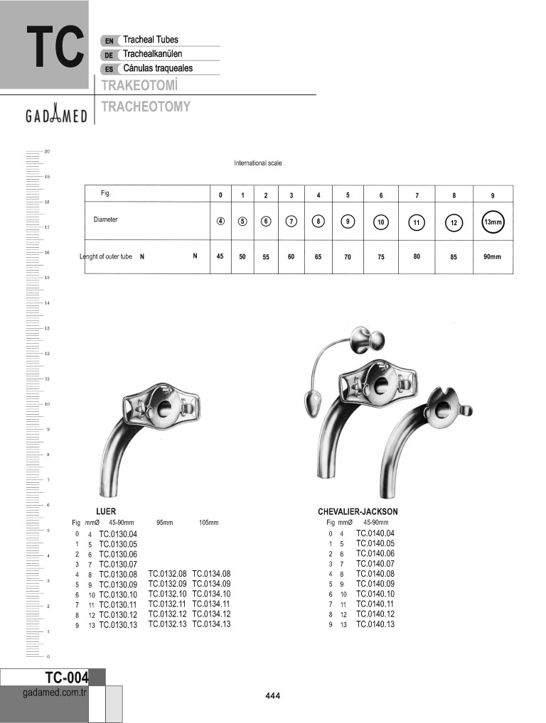 TC.0010.07 8681091053735 UCKERMANN TROKAR 8MM 13CM TC.0010.09 8681091053742 UCKERMANN TROKAR 10MM 13CM TC.0020.12 8681091053759 TROUSSEAU (BOWLBY) TRAKEAL DİLATÖR 12CM TC.0020.14 8681091053766 TROUSSEAU (BOWLBY) TRAKEAL DİLATÖR 14CM TC.0022.14 8681091053773 LABORDE TRAKEAL DİLATÖR 14CM TC.0026.19 8681091053780 WEERDA TRAKEOSTOMİ AYIRICI 19CM TC.0030.07 8681091053797 BOSE TRAKEAL AYIRICI 7CM TC.0040.01 8681091053803 TRAKEOSTOMİ PANÇI TC.0040.02 8681091053810 TRAKEOSTOMİ PANÇI TC.0050.17 8681091053827 LUKENS (TRACHEA) TİMUS EKARTÖRÜ D/E 17CM TC.0054.17 8681091053834 JACKSON TRAKE KANCASI ÇİFTE 17CM TC.0060.18 8681091053841 JACKSON TRAKE EKARTÖRÜ D/E KESKİN 18CM TC.0062.18 8681091053858 JACKSON TRAKE EKARTÖRÜ D/E KÜNT 18CM TC.0070.18 8681091053865 TRAKEAL KANCA TEK KESKİN 18CM TC.0072.18 8681091053872 TRAKEAL KANCA TEK KÜNT 18CM TC.0076.18 8681091053889 TRAKEAL KANCA ÇİFT KESKİN 18CM TC.0078.18 8681091053896 TRAKEAL KANCA ÇİFT KÜNT 18CM TC.0080.21 8681091053902 SCHOENBORN TİMÜS EKARTÖRÜ 6X13MM, 20.5CM TC.0090.13 8681091053919 ROSE TRAKE KANCASI ÇİFT UÇLU 13CM TC.0094.11 8681091053926 LEUR TRAKE EKARTÖRÜ 11CM TC.0100.15 8681091053933 JACKSON TRAKE KANCASI 15CM TC.0106.15 8681091053940 NEWS TRAKE EKARTÖRÜ D/E 15CM TC.0110.16 8681091053957 ITERSON TRAKE KANCASI KESKİN 16CM TC.0112.16 8681091053964 ITERSON TRAKE KANCASI KÜNT 16CM TC.0120.16 8681091053971 BOSE TRAKEOSTOMİ KANCASI SOL 16CM TC.0122.16 8681091053988 BOSE TRAKEOSTOMİ KANCASI SAĞ 16CM TC.0130.04 8681091053995 LUER TRAKE TÜPÜ ŞEK.0, 4MM S/P TC.0130.05 8681091054008 LUER TRAKE TÜPÜ ŞEK.1, 5MM S/P TC.0130.06 8681091054015 LUER TRAKE TÜPÜ ŞEK.2, 6MM S/P TC.0130.07 8681091054022 LUER TRAKE TÜPÜ ŞEK.3, 7MM S/P TC.0130.08 8681091054039 LUER TRAKE TÜPÜ ŞEK.4, 8MM S/P TC.0130.09 8681091054046 LUER TRAKE TÜPÜ ŞEK.5, 9MM S/P TC.0130.10 8681091054053 LUER TRAKE TÜPÜ ŞEK.6, 10MM S/P TC.0130.11 8681091054060 LUER TRAKE TÜPÜ ŞEK.7, 11MM S/P TC.0130.12 8681091054077 LUER TRAKE TÜPÜ ŞEK. 8, 12MM S/P TC.0130.13 8681091054084 LUER TRAKE TÜPÜ ŞEK.9, 13MM S/P TC.0132.08 8681091054091 LUER TRAKE TÜPÜ 8MMx95MM S/P ŞEK.4 TC.0132.09 8681091054107 LUER TRAKE TÜPÜ 9MMx95MM S/P ŞEK.5 TC.0132.10 8681091054114 LUER TRAKE TÜPÜ 10MMx95MM S/P ŞEK.6 TC.0132.11 8681091054121 LUER TRAKE TÜPÜ 11MMx95MM S/P ŞEK.7 TC.0132.12 8681091054138 LUER TRAKE TÜPÜ 12MMx95MM S/P ŞEK.8 TC.0132.13 8681091054145 LUER TRAKE TÜPÜ 13MMx95MM S/P ŞEK.9 TC.0134.08 8681091054152 LUER TRAKE TÜPÜ 8MMx105MM S/P ŞEK.4 TC.0134.09 8681091054169 LUER TRAKE TÜPÜ 9MMx105MM S/P ŞEK.5 TC.0134.10 8681091054176 LUER TRAKE TÜPÜ 10MMx105MM S/P ŞEK. 6 TC.0134.11 8681091054183 LUER TRAKE TÜPÜ 11MMx105MM S/P ŞEK.7 TC.0134.12 8681091054190 LUER TRAKE TÜPÜ 12MMx105MM S/P ŞEK. 8 TC.0134.13 8681091054206 LUER TRAKE TÜPÜ 13MMx105MM S/P ŞEK.9 TC.0140.04 8681091054213 JACKSON TRAKE TÜPLERİ ŞEK.0, 4MM S/P TC.0140.05 8681091054220 JACKSON TRAKE TÜPLERİ ŞEK.1, 5MM S/P TC.0140.06 8681091054237 JACKSON TRAKE TÜPLERİ ŞEK.2, 6MM S/P TC.0140.07 8681091054244 JACKSON TRAKE TÜPLERİ ŞEK.3, 7MM S/P TC.0140.08 8681091054251 JACKSON TRAKE TÜPLERİ ŞEK.4, 8MM S/P TC.0140.09 8681091054268 JACKSON TRAKE TÜPLERİ ŞEK.5, 9MM S/P TC.0140.10 8681091054275 JACKSON TRAKE TÜPLERİ ŞEK.6, 10MM S/P TC.0140.11 8681091054282 JACKSON TRAKE TÜPLERİ ŞEK.7, 11MM S/P TC.0140.12 8681091054299 JACKSON TRAKE TÜPLERİ ŞEK.8, 12MM S/P TC.0140.13 8681091054305 JACKSON TRAKE TÜPLERİ ŞEK.9, 13MM S/P TC.0150.04 8681091054312 KRISHABER TRAKE TÜPÜ ŞEK.0, 4MM S/P TC.0150.05 8681091054329 KRISHABER TRAKE TÜPÜ ŞEK.1, 5MM S/P TC.0150.06 8681091054336 KRISHABER TRAKE TÜPÜ ŞEK.2, 6MM S/P TC.0150.07 8681091054343 KRISHABER TRAKE TÜPÜ ŞEK.3, 7MM S/P TC.0150.08 8681091054350 KRISHABER TRAKE TÜPÜ ŞEK.4, 8MM S/P TC.0150.09 8681091054367 KRISHABER TRAKE TÜPÜ ŞEK.5, 9MM S/P TC.0150.10 8681091054374 KRISHABER TRAKE TÜPÜ ŞEK.6, 10MM S/P TC.0150.11 8681091054381 KRISHABER TRAKE TÜPÜ ŞEK.7, 11MM S/P TC.0150.12 8681091054398 KRISHABER TRAKE TÜPÜ ŞEK.8, 12MM S/P TC.0152.04 8681091054404 KRISHABER LUER TÜPÜ ŞEK.0, 4MM S/P TC.0152.05 8681091054411 KRISHABER LUER TÜPÜ ŞEK.1, 5MM S/P TC.0152.06 8681091054428 KRISHABER LUER TÜPÜ ŞEK.2, 6MM S/P TC.0152.07 8681091054435 KRISHABER LUER TÜPÜ ŞEK.3, 7MM S/P TC.0152.08 8681091054442 KRISHABER LUER TÜPÜ ŞEK.5, 8MM S/P TC.0152.09 8681091054459 KRISHABER LUER TÜPÜ ŞEK.5, 9MM S/P TC.0152.10 8681091054466 KRISHABER LUER TÜPÜ ŞEK.6, 10MM S/P TC.0152.11 8681091054473 KRISHABER LUER TÜPÜ ŞEK.7, 11MM S/P TC.0152.12 8681091054480 KRISHABER LUER TÜPÜ ŞEK.8, 12MM S/P TC.0160.16 8681091054497 PARKER TRAKE TÜPÜ ŞEK.1, 16FG S/P TC.0160.18 8681091054503 PARKER TRAKE TÜPÜ ŞEK.2, 18FG S/P TC.0160.20 8681091054510 PARKER TRAKE TÜPÜ ŞEK.3, 20FG S/P TC.0160.22 8681091054527 PARKER TRAKE TÜPÜ ŞEK.4, 22FG S/P TC.0160.24 8681091054534 PARKER TRAKE TÜPÜ ŞEK.5, 24FG S/P TC.0160.26 8681091054541 PARKER TRAKE TÜPÜ ŞEK.6, 26FG S/P TC.0160.28 8681091054558 PARKER TRAKE TÜPÜ ŞEK.7, 28FG S/P TC.0160.30 8681091054565 PARKER TRAKE TÜPÜ ŞEK.8, 30FG S/P TC.0160.32 8681091054572 PARKER TRAKE TÜPÜ ŞEK.9, 32FG S/P TC.0170.04 8681091054589 COLLIN TRAKE TÜPÜ ŞEK.0, 4MM S/P TC.0170.05 8681091054596 COLLIN TRAKE TÜPÜ ŞEK.1, 5MM S/P TC.0170.06 8681091054602 COLLIN TRAKE TÜPÜ ŞEK.2, 6MM S/P TC.0170.07 8681091054619 COLLIN TRAKE TÜPÜ ŞEK.3, 7MM S/P TC.0170.08 8681091054626 COLLIN TRAKE TÜPÜ ŞEK.4, 8MM S/P TC.0170.09 8681091054633 COLLIN TRAKE TÜPÜ ŞEK.5, 9MM S/P TC.0170.10 8681091054640 COLLIN TRAKE TÜPÜ ŞEK.6, 10MM S/P TC.0170.11 8681091054657 COLLIN TRAKE TÜPÜ ŞEK.7, 11MM S/P TC.0170.12 8681091054664 COLLIN TRAKE TÜPÜ ŞEK.8, 12MM S/P TC.0180.18 8681091054671 FULLER TRAKE TÜPÜ ŞEK.1, 18FG S/P TC.0180.20 8681091054688 FULLER TRAKE TÜPÜ ŞEK.2, 20FG S/P TC.0180.22 8681091054695 FULLER TRAKE TÜPÜ ŞEK.3, 22FG S/P TC.0180.24 8681091054701 