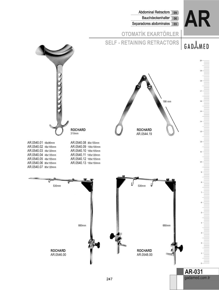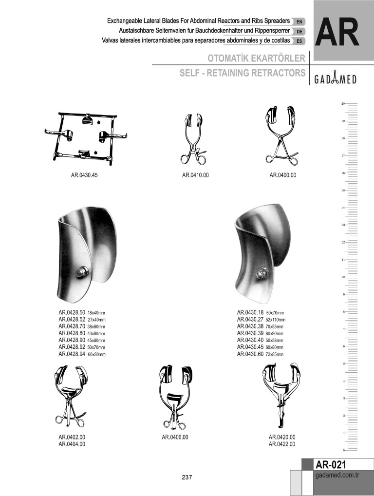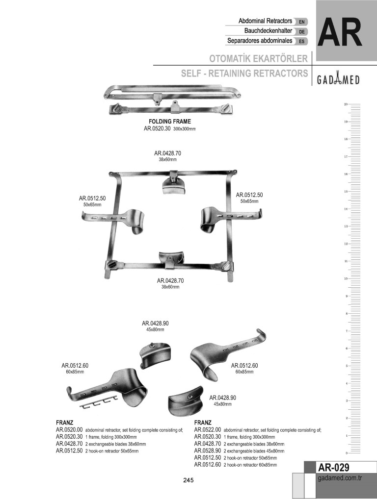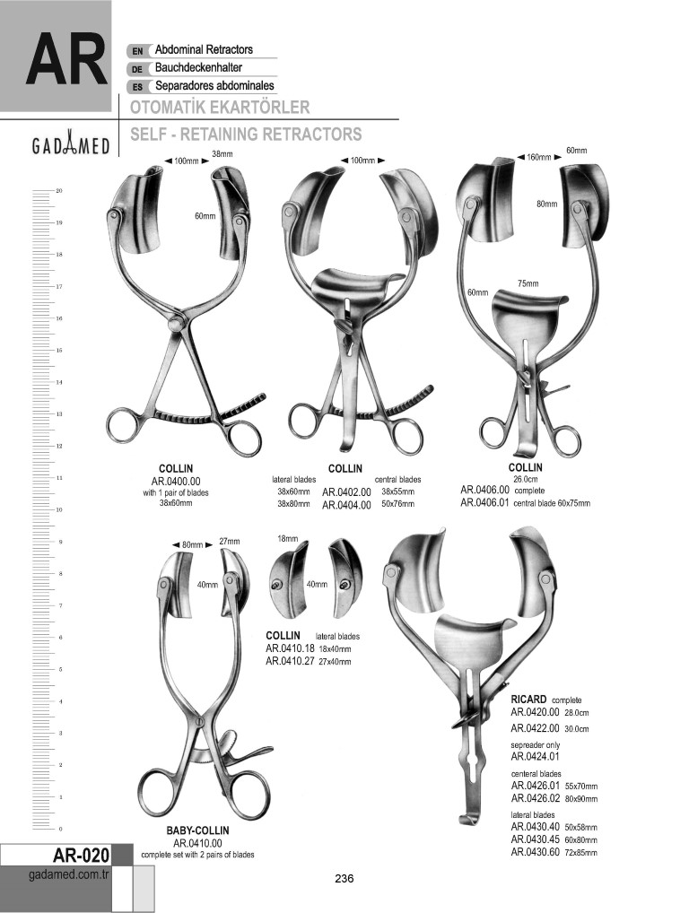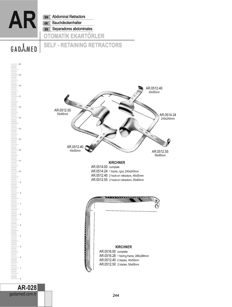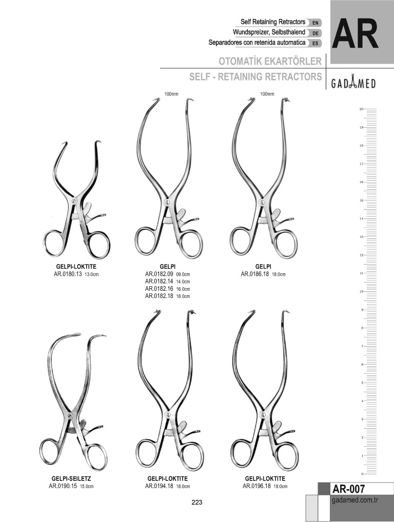 AR.0010.04 8681091028627 Otomatik ekartör, Logan model 3X3T, 4CM AR.0014.06 8681091028634 Otomatik ekartör, Buckley model cilt için keskin 3X3PR. 6CM AR.0020.08 8681091028641 Otomatik ekartör, cilt için 8.0 cm AR.0030.07 8681091028658 Otomatik ekartör, Alm model keskin 7CM AR.0030.10 8681091028665 Otomatik ekartör, Alm model keskin 10CM AR.0032.07 8681091028672 Otomatik ekartör, Alm model künt 7CM AR.0032.10 8681091028689 Otomatik ekartör, Alm model künt 10CM AR.0040.10 8681090891703 Otomatik ekartör, Kaupp model keskin 10.0 cm AR.0042.10 8681091028696 Otomatik ekartör, Kaupp model künt 10.0 cm AR.0050.05 8681091028702 Otomatik ekartör, Finsen model Keskin 3X3PR. 5CM AR.0050.07 8681091028719 Otomatik ekartör, Finsen model Keskin 7CM AR.0052.05 8681091028726 Otomatik ekartör, Finsen model künt 3X3PR. 5CM AR.0052.07 8681091028733 Otomatik ekartör, Finsen model künt 3X3PR. 7CM AR.0054.05 8681091028740 Otomatik ekartör, Finsen model Keskin W/SCREW 5CM AR.0054.07 8681091028757 Otomatik ekartör, Finsen model Keskin 7CM AR.0056.05 8681091028764 Otomatik ekartör, Finsen model künt W/SCREW 5CM AR.0056.07 8681091028771 Otomatik ekartör, Finsen model künt 7CM AR.0060.10 8681091028788 Otomatik ekartör,Jansen model keskin 3X3PR. 10CM AR.0062.10 8681091028795 Otomatik ekartör,Jansen model künt 3X3PR. 10CM AR.0070.00 8681091028801 Otomatik ekartör,Vickers model RİNG MODEL 5CM AR.0072.00 8681091028818 Otomatik ekartör, Vickers model komple AR.0072.01 8681091028825 Otomatik ekartör, Vickers model 12X10MM AR.0072.02 8681091028832 Otomatik ekartör, Vickers model 10X18MM AR.0074.00 8681091028849 Otomatik ekartör, Vickers model 10X12mm AR.0076.00 8681091028856 Otomatik ekartör, Vickers model UNİVERSAL HAND & CARPAL AR.0080.10 8681091028863 Otomatik ekartör, Weitlaner model keskin 2X3PR. 11.5CM AR.0082.10 8681091028870 Otomatik ekartör, Weitlaner model künt 2X3PR. 11.5CM AR.0084.13 8681091028887 Otomatik ekartör, Weitlaner model 3X4PR. SHARP 13CM AR.0084.14 8681091028894 Otomatik ekartör, Weitlaner model 3X4PR. SHARP 14CM AR.0084.16 8681091028900 Otomatik ekartör, Weitlaner model 3X4PR. SHARP 16.5CM AR.0086.13 8681091028917 Otomatik ekartör, Weitlaner model 3X4PR. BLUNT 13CM AR.0086.14 8681091028924 Otomatik ekartör, Weitlaner model 3X4PR. BLUNT 14CM AR.0086.16 8681091028931 Otomatik ekartör, Weitlaner model 3X4PR. BLUNT 16.5CM AR.0088.13 8681091028948 Otomatik ekartör, Weitlaner Wullstein model 3X4PR. SH. 13CM AR.0089.13 8681091028955 Otomatik ekartör, Weitlaner Wullstein model 3X4PR. BL. 13CM AR.0090.13 8681091028962 Otomatik ekartör, Weitlaner Wullstein model 3X3PR. SH. 13CM AR.0092.13 8681091028979 Otomatik ekartör, Weitlaner Wullstein model 3X3PR. BL. 13CM AR.0094.20 8681091028986 Otomatik ekartör, Weitlaner model 3X4PR. keskin 20CM AR.0094.23 8681091028993 Otomatik ekartör, Weitlaner model 3X4PR. keskin 23CM AR.0094.26 8681091029006 Otomatik ekartör, Weitlaner model 3X4PR. keskin 26CM AR.0096.20 8681091029013 Otomatik ekartör, Weitlaner model 3X4PR. keskin 20CM AR.0096.23 8681091029020 Otomatik ekartör, Weitlaner model 3X4PR. keskin 23CM AR.0096.26 8681091029037 Otomatik ekartör, Weitlaner model 3X4PR. keskin 26CM AR.0100.20 8681091029044 Otomatik ekartör, Travers model 4X5PR. 19X25 & 25X25MM, BL. 20CM AR.0100.21 8681091029051 Otomatik ekartör, Travers model 4X5PR. 19X25 & 25X25MM BL 21.5CM AR.0104.13 8681091029068 Otomatik ekartör, Weitlaner baby model SOLİD BLADE 13CM AR.0110.13 8681091029075 Otomatik ekartör, Milligan model 3X3PR. BLUNT 13CM AR.0114.13 8681091029082 Otomatik ekartör, west model keskin 13CM AR.0116.13 8681091029099 Otomatik ekartör, west model künt 13CM AR.0120.19 8681091029105 Otomatik ekartör, Anderson-adson model keskin 4X4PR. 19.5CM AR.0124.13 8681091029112 Otomatik ekartör, Plester model 2X2PR. SHARP 13CM AR.0126.13 8681091029129 Otomatik ekartör, Plester model 2X2PR. BLUNT 13CM AR.0130.11 8681091029136 Otomatik ekartör, Plester model 1X2PR. LEFT 11CM AR.0132.11 8681091029143 Otomatik ekartör, Plester model 1X2PR. RİGHT 11CM AR.0140.14 8681091029150 Otomatik ekartör, Scalp Contour model 3X4PR. keskin 14CM AR.0142.14 8681091029167 Otomatik ekartör, Scalp Contour model 3X4PR. künt 14CM AR.0150.16 8681091029174 Otomatik ekartör, Mollison model 4X4PR. SH 16.5CM AR.0152.15 8681091029181 Otomatik ekartör, Mollison model keskin 15CM AR.0156.18 8681091029198 Otomatik ekartör, Rigby model, Vajinal tip 18.0 cm AR.0160.17 8681091029204 Otomatik ekartör, Mayo-Adams model 17.0 cm AR.0162.17 8681091029211 Otomatik ekartör, Mayo-Adams model Central Bleyt 17CM AR.0170.18 8681091029228 Otomatik ekartör, Darling model CVD 57X38MM 18CM AR.0172.18 8681091029235 Otomatik ekartör, Darling modelCVD 57X38MM 18CM AR.0176.01 8681091029242 Otomatik ekartör, Henley model 3X4PR. SHARP 16.5CM AR.0176.02 8681091029259 Otomatik ekartör, Henley model 3X4PR. BLUNT 16.5CM AR.0176.19 8681091029266 Otomatik ekartör, Henley model bleyt 16X19MM AR.0176.25 8681091029273 Otomatik ekartör, Henley model bleyt16X25MM AR.0176.32 8681091029280 Otomatik ekartör, Henley model bleyt 16X32MM AR.0180.13 8681091029297 Otomatik ekartör, Gelpi-Loktite model 13CM AR.0182.09 8681091029303 Otomatik ekartör, Gelpi model 9CM AR.0182.14 8681091029310 Otomatik ekartör, Gelpi model 14CM AR.0182.16 8681091029327 Otomatik ekartör, Gelpi model 16CM AR.0182.18 8681091029334 Otomatik ekartör, Gelpi model 18CM AR.0186.18 8681091029341 Otomatik ekartör, Gelpi model stoplu 18CM AR.0190.15 8681091029358 Otomatik ekartör, Gelpi Seiletz model 15CM AR.0194.18 8681091029365 Otomatik ekartör, Gelpi Loktite model18CM AR.0196.18 8681091029372 Otomatik ekartör, Gelpi Loktite model 18CM AR.0200.22 8681091029389 Otomatik ekartör, Norfolk-Norwich model 4X5PR. BLUNT 51X215MM AR.0204.01 8681091029396 Otomatik ekartör, 6X6PR. SH, 27CM AR.0204.02 8681091029402 Otomatik ekartör, 6X6PR. SH, 27CM AR.0210.13 8681091029419 Otomatik ekartör, Adson model 3X4PR. keskin, 13CM 