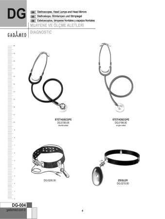 DG.0010.18 8681091000012 Refleks çekici Taylor 18cm DG DG.0010.20 8681091000029 Refleks çekici Taylor 20cm DG DG.0016.20 8681091000036 Refleks çekici Dejerine 20cm DG DG.0022.21 8681091000043 Refleks çekici Dejerine 21cm DG DG.0022.35 8681091000050 Refleks çekici Dejerine 35cm DG DG.0028.22 8681091000067 Refleks çekici Neuro-Duofleks 35cm DG DG.0034.24 8681091000074 Refleks çekici Troemner 24cm DG DG.0040.17 8681091000081 Refleks çekici Berliner 17cm DG DG.0040.20 8681091000098 Refleks çekici Berliner 20cm DG DG.0046.18 8681091000104 Refleks çekici Buck 18cm DG DG.0052.18 8681091000111 Refleks çekici Buck Teleskopik 18cm DG DG.0058.16 8681091000128 Refleks çekici Traube 16cm DG DG.0064.20 8681091000135 Refleks çekici Hurst 20cm DG DG.0070.23 8681091000142 Refleks çekici Rabiner 23cm DG DG.0076.22 8681091000159 Refleks çekici Babinsky 23cm DG DG.0076.25 8681091000166 Refleks çekici Babinsky 25cm DG DG.0082.50 8681091000173 Refleks çekici National Hospital 50mm 25cm DG DG.0082.60 8681091000180 Refleks çekici National Hospital 60mm 25cm DG DG.0082.70 8681091000197 Refleks çekici National Hospital 70mm 25cm DG DG.0088.35 8681091000203 Refleks çekici Queen Square 70mm 25cm DG DG.0110.18 8681091000210 Steteskop ahşap Pinard 18cm DG DG.0116.15 8681091000227 Steteskop plastik Pinard 15cm DG DG.0120.15 8681091000234 Steteskop plastik Alüminyum 15cm DG DG.0122.15 8681091000241 Steteskop plastik 15cm Alüminyum DG DG.0130.19 8681091000258 Muayene, ölçme, teşhis wartenberg model 19 cm DG DG.0150.02 8681091000265 Mezura 2 metre DG DG.0160.09 8681091000272 Estezyometre, weber model 9 cm DG DG.0170.23 8681091000289 Goniometre, Moeltgen model 23 cm DG DG.0180.15 8681091000296 cetvel metal 15 cm DG DG.0180.30 8681091000302 cetvel metal 30 cm DG DG.0180.60 8681091000319 cetvel metal 60 cm DG DG.0190.00 8681090899600 Steteskop çift tararlı DG DG.0196.00 8681091000333 Steteskop tek taraflı DG DG.0200.00 8681091000340 Kafa lambası DG DG.0210.00 8681091000357 Kafa aynası DG DG.0220.00 8681091000364 Otoskop set sert plastik kutulu DG DG.0224.00 8681091000371 Otoskop set yumuşak çantalı DG DG.0230.00 8681091000388 Oftalmoskop set sert plastik kutulu DG DG.0240.00 8681091000395 Otoskop ve Oftalmoskop kombinasyon set DG DG.0250.00 8681091000401 KBB teşhis set DG