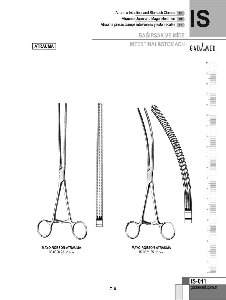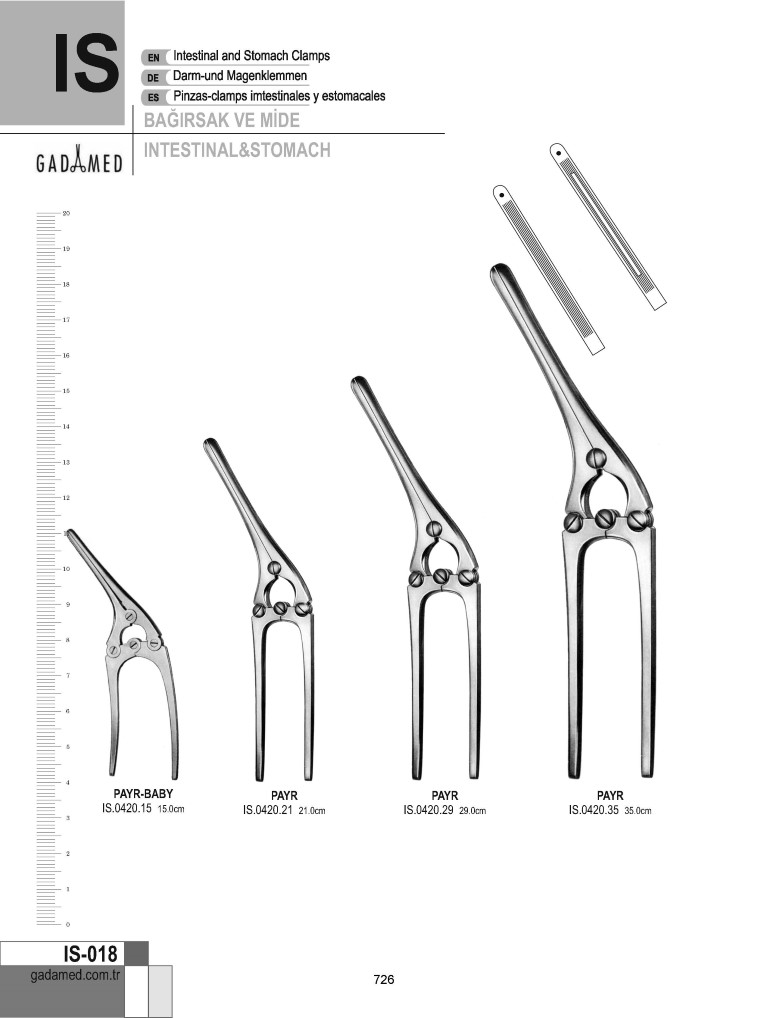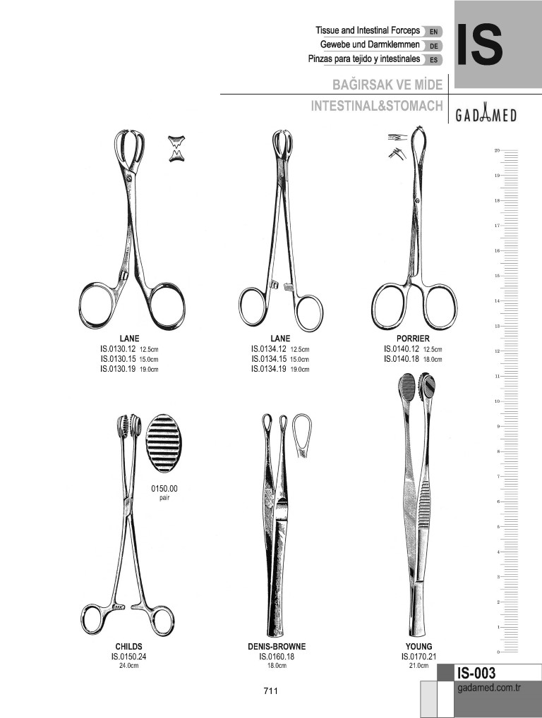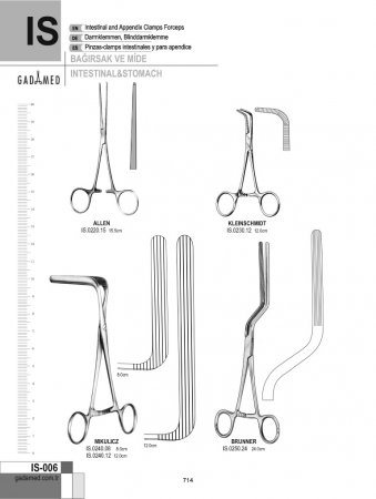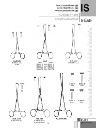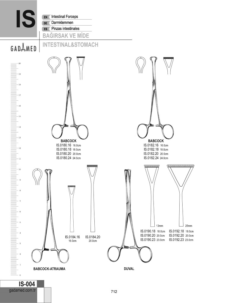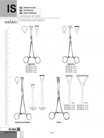IS.0010.12 8681091078707 Allis Bebek Doku Forsepsi 4x5T 12cm IS.0020.15 8681091078714 Allis Doku Forsepsi 4x5T, 15cm IS.0020.19 8681091078721 Allis Doku Forsepsi 4x5T, 19cm IS.0020.22 8681091078738 Allis Doku Forsepsi 4x5T, 22cm IS.0020.25 8681091078745 Allis Doku Forsepsi 4x5T, 25cm IS.0022.15 8681091078752 Allis Doku Forsepsi 5x6T 15cm IS.0022.19 8681091078769 Allis Doku Forsepsi 5x6T 19cm IS.0022.22 8681091078776 Allis Doku Forsepsi 5x6T 22cm IS.0022.25 8681091078783 Allis Doku Forsepsi 5x6T 24cm IS.0030.15 8681091078790 Boys Allis İntesinal Doku Forsepsi 15cm IS.0040.15 8681091078806 Allis Adair Doku Forsepsi 9x10T 15.5cm IS.0050.15 8681091078813 Judd-Allis Doku Forsepsi 3x4T 15cm IS.0050.19 8681091078820 Judd-Allis Doku Forsepsi 3x4T 19cm IS.0060.16 8681091078837 Allis Doku Forsepsi Atravmatik 16cm IS.0060.20 8681091078844 Allis Doku Forsepsi Atravmatik 20cm IS.0060.25 8681091078851 Allis Doku Forsepsi Atravmatik 25cm IS.0060.30 8681091078868 Allis Doku Forsepsi Atravmatik 30cm IS.0070.20 8681091078875 Thomas Allis Doku Forsepsi 6x7T 20cm IS.0080.20 8681091078882 Allis Doku Forsepsi 5x6T 20cm IS.0090.20 8681091078899 Lockwood İntestinal Kavrama Forsepsi 20cm IS.0100.16 8681091078905 Williams Kavrama Forsepsi 16.5cm IS.0110.16 8681091078912 Lockwood Allis İntesinal Doku Forsepsi 16cm IS.0110.20 8681091078929 Lockwood Allis İntesinal Doku Forsepsi 20cm IS.0120.19 8681091078936 Littlewood Doku (Moynihan) Forsepsi 2X3T 19cm IS.0130.12 8681091078943 Lane Doku Forsepsi S/J 12.5cm IS.0130.15 8681091078950 Lane Doku Forsepsi S/J 15cm IS.0130.19 8681091078967 Lane Doku Forsepsi S/J 19cm IS.0134.12 8681091078974 Lane Doku Forsepsi 12.5cm IS.0134.15 8681091078981 Lane Doku Forsepsi 15cm IS.0134.19 8681091078998 Lane Doku Forsepsi B/J 19cm IS.0140.12 8681091079001 Porrier Doku Forsepsi 12.5cm IS.0140.18 8681091079018 Porrier Doku Forsepsi 18cm IS.0150.00 8681091079025 Sadece 52.0150.24 için lastik (çift) IS.0150.24 8681091079032 Çocuk İntestinal Tutma Forsepsi 24cm IS.0160.18 8681091079049 Denis Browne İntestinal Tutma Forsepsi 18cm IS.0170.21 8681091079056 Young İntestinal Tutma Forsepsi 21cm IS.0180.16 8681091079063 Babcock Doku Forsepsi Uzun tırtıklı 16cm IS.0180.18 8681091079070 Babcock Doku Forsepsi Uzun tırtıklı 18cm IS.0180.20 8681091079087 Babcock Doku Forsepsi Uzun tırtıklı 20cm IS.0180.24 8681091079094 Babcock Doku Forsepsi Uzun tırtıklı 24cm IS.0182.16 8681091079100 Babcock Doku Forsepsi çapraz tırtıklı 16cm IS.0182.18 8681091079117 Babcock Doku Forsepsi çapraz tırtıklı 18cm IS.0182.20 8681091079124 Babcock Doku Forsepsi çapraz tırtıklı 20cm IS.0182.24 8681091079131 Babcock Doku Forsepsi çapraz tırtıklı 24cm IS.0184.16 8681091079148 Babcock Doku Forsepsi Atravmatik 16cm IS.0184.20 8681091079155 Babcock Doku Forsepsi Atravmatik 20cm IS.0190.18 8681091079162 Duval Kavrama Forsepsi 13mm genişlik, 18cm IS.0190.20 8681091079179 Duval Kavrama Forsepsi 13mm genişlik, 20cm IS.0190.23 8681091079186 Duval Kavrama Forsepsi 13mm, 23cm IS.0192.18 8681091079193 Duval Kavrama Forsepsi 25mm genişlik, 18cm IS.0192.20 8681091079209 Duval Kavrama Forsepsi 25mm genişlik, 20cm IS.0192.23 8681091079216 Duval Kavrama Forsepsi 25mm genişlik, 23cm IS.0200.18 8681091079223 Doyen bebek İntestinal Forsepsi düz 18cm IS.0201.18 8681091079230 Doyen Bebek İntestinal Forsepsi kavisli 18cm IS.0204.21 8681091079247 Doyen İntestinal Forsepsi düz 21cm IS.0204.23 8681091079254 Doyen İntestinal Forsepsi düz 23cm IS.0205.21 8681091079278 Doyen İntestinal Forsepsi kavisli 21cm IS.0205.23 8681091079285 Doyen İntestinal Forsepsi kavisli 23cm IS.0210.21 8681091079308 Mayo Robson İntestinal klemp düz 21cm IS.0210.23 8681091079315 Mayo Robson İntestinal klemp düz 23cm IS.0210.25 8681091079322 Mayo Robson İntestinal klemp düz 25cm IS.0211.21 8681091079339 Mayo Robson İntestinal klemp kavisli 21cm IS.0211.23 8681091079346 Mayo Robson İntestinal klemp kavisli 23cm IS.0211.25 8681091079353 Mayo Robson İntestinal klemp kavisli 25cm IS.0220.15 8681091079360 Allen İntestinal Klemp düz tırtıklı, 1x2T ile 15.5cm IS.0230.12 8681091079377 KLeibingernschmidt Apandis Forsepti 12.5cm IS.0240.08 8681091079384 Mikulicz İntestinal Klemp 8x19cm IS.0240.12 8681091079391 Mikulicz İntestinal Klemp 12x19cm IS.0250.24 8681091079407 Brunner İntestinal Forsepsi 24cm IS.0260.25 8681091079414 Scudder İntestinal klemp pürüzsüz 25cm IS.0260.33 8681091079421 Scudder İntestinal klemp pürüzsüz düz 33cm IS.0261.25 8681091079438 Scudder İntestinal klemp pürüzsüz kavisli 25cm IS.0261.33 8681091079445 Scudder İntestinal klemp pürüzsüz kavisli 33cm IS.0270.36 8681091079452 Scudder İntestinal klemp düz 36cm IS.0271.36 8681091079469 Scudder İntestinal klemp kavisli 36cm IS.0280.29 8681091079476 Moynihan İntest. Klemp Fenestre düz 29cm IS.0281.29 8681091079483 Moynihan İntest. Klemp Fenestre kavisli 29cm IS.0290.22 8681091079490 Kocher İntestinal Forsepsi düz 22cm IS.0290.25 8681091079506 Kocher İntestinal Forsepsi düz 25cm IS.0290.28 8681091079513 Kocher İntestinal Forsepsi düz 28cm IS.0291.22 8681091079520 Kocher İntestinal Forsepsi kavisli 22cm IS.0291.25 8681091079537 Kocher İntestinal Forsepsi kavisli 25cm IS.0291.28 8681091079544 Kocher İntestinal Forsepsi kavisli 28cm IS.0300.16 8681091079551 Doyen İntestinal Forsepsi Atravma 16cm IS.0300.18 8681091079568 Doyen İntestinal Forsepsi Atravma 18cm IS.0300.21 8681091079575 Doyen İntestinal Forsepsi Atravma 21cm IS.0300.23 8681091079582 Doyen İntestinal Forsepsi Atravma 23cm IS.0301.16 8681091079599 Doyen İntestinal Forsepsi Atravma 16cm IS.0301.18 8681091079605 Doyen İntestinal Forsepsi Atravma 18cm IS.0301.21 8681091079612 Doyen İntestinal Forsepsi Atravma 21cm IS.0301.23 8681091079629 Doyen İntestinal Forsepsi Atravma 23cm IS.0310.22 8681091079636 Kocher İntestinal Forsepsi Atravma 22cm IS.0310.25 8681091079643 Kocher İntestinal Forsepsi Atravma 25cm IS.0310.28 8681091079650 Kocher İntestinal Forsepsi At