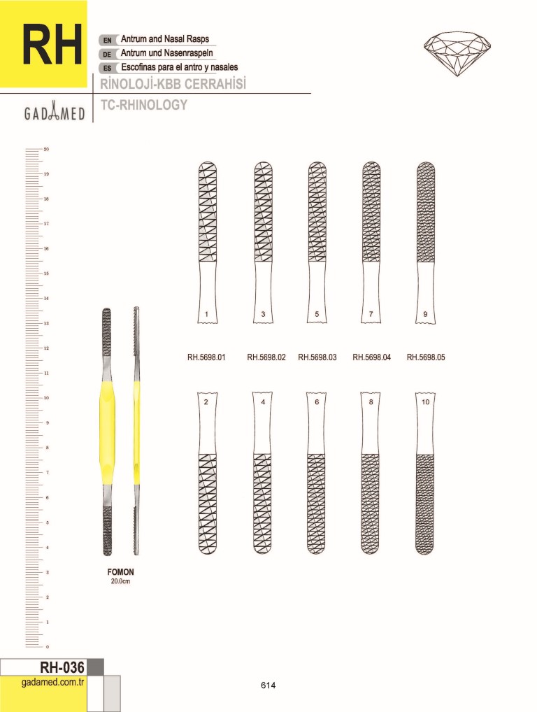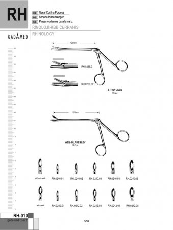 RH.0010.00 8681091066742 Vacher Nazal Spekulum RH.0014.01 8681091066759 Voltolini Nazal Spekulum Şek.1 RH.0014.02 8681091066766 Voltolini Nazal Spekulum Şek.2 RH.0014.03 8681091066773 Voltolini Nazal Spekulum Şek.3 RH.0020.00 8681091066780 Thudichum Nazal Spekulum (Goldsmith) set/7 RH.0020.01 8681091066797 Thudichum Nazal Spekulum (Goldsmith) Şek.1 RH.0020.02 8681091066803 Thudichum Nazal Spekulum (Goldsmith) Şek.2 RH.0020.03 8681091066810 Thudichum Nazal Spekulum (Goldsmith) Şek.3 RH.0020.04 8681091066827 Thudichum Nazal Spekulum (Goldsmith) Şek.4 RH.0020.05 8681091066834 Thudichum Nazal Spekulum (Goldsmith) Şek.5 RH.0020.06 8681091066841 Thudichum Nazal Spekulum (Goldsmith) Şek.6 RH.0020.07 8681091066858 Thudichum Nazal Spekulum (Goldsmith) Şek.7 RH.0024.00 8681091066865 St. Clair Thomson Nazal Spekulum set/3 RH.0024.01 8681091066872 St. Clair Thomson Nazal Spekulum 38mm, Şek.1 RH.0024.02 8681091066889 St. Clair Thomson Nazal Spekulum 51mm, Şek.2 RH.0024.03 8681091066896 St. Clair Thomson Nazal Spekulum 76mm, Şek.3 RH.0030.00 8681091066902 Hartmann Halle Spekulum set/3, Şek.1, 2 ve 3 RH.0030.01 8681091066919 Hartmann Halle Spekulum Şek.1 RH.0030.02 8681091066926 Hartmann Halle Spekulum Şek.2 (Pilcher) RH.0030.03 8681091066933 Hartmann Halle Spekulum Şek.3 RH.0036.14 8681091066940 Schwarz Nazal Spekulum 14cm RH.0040.01 8681091066957 Vienna Nazal Spekulum Infant 14.5cm RH.0040.02 8681091066964 Vienna Nazal Spekulum Çocuk 14.5cm RH.0040.03 8681091066971 Vienna Nazal Spekulum Yetişkin 14.5cm RH.0040.04 8681091066988 Vienna Nazal Spekulum hafif 14.5cm RH.0044.14 8681091066995 Mod. Vien Nazal Spekulumlar 14.5cm RH.0048.13 8681091067008 Mod. Martin Nazal Spekulumlar düz 13cm RH.0049.13 8681091067015 Mod. Martin Nazal Spekulum açılı 13cm RH.0052.01 8681091067022 Tieck Halle Nazal Spekulum 13.5cm Şek.1 RH.0052.02 8681091067039 Tieck Halle Nazal Spekulum 13.5cm Şek.2 RH.0056.13 8681091067046 Tieck-Halle Nazal Spekulum açılı 13.5cm RH.0060.35 8681091067053 Killian Nazal Spekulum S/J 35mm RH.0060.50 8681091067060 Killian Nazal Spekulum S/J 50mm RH.0060.75 8681091067077 Killian Nazal Spekulum S/J 75mm RH.0060.90 8681091067084 Killian Nazal Spekulum S/J 90mm RH.0062.35 8681091067091 Killian Nazal Spekulum S/J yandan vidalı 35mm RH.0062.50 8681091067107 Killian Nazal Spekulum S/J yandan vidalı 50mm RH.0062.75 8681091067114 Killian Nazal Spekulum S/J yandan vidalı 75mm RH.0062.90 8681091067121 Killian Nazal Spekulum S/J yandan vidalı 90mm RH.0070.03 8681090942269 Snare tel bobin 0.3mm 10 metre RH.0070.04 8681090943051 Snare tel bobin 0.4mm 10 metre RH.0070.35 8681091067138 Cottle Nazal Spekulum 35mm 14cm RH.0070.50 8681091067145 Cottle Nazal Spekulum 50mm 14cm RH.0070.75 8681091067152 Cottle Nazal Spekulum 75mm 14cm RH.0070.90 8681091067169 Cottle Nazal Spekulum 90mm 14cm RH.0072.35 8681091067176 Cottle Nazal Spekulum yandan vidalı 35mm 14cm RH.0072.50 8681091067183 Cottle Nazal Spekulum yandan vidalı 50mm 14cm RH.0072.75 8681091067190 Cottle Nazal Spekulum yandan vidalı 75mm 14cm RH.0072.90 8681091067206 Cottle Nazal Spekulum yandan vidalı 90mm 14cm RH.0074.02 8681090943846 Tonsil teli 0,2mm RH.0074.03 8681090944638 Tonsil teli 0,3mm RH.0076.35 8681091067213 Cottle Nazal Spekulum siyah 35mm, 14cm RH.0076.50 8681091067220 Cottle Nazal Spekulum siyah 50mm, 14cm RH.0076.75 8681091067237 Cottle Nazal Spekulum siyah 75mm, 14cm RH.0076.90 8681091067244 Cottle Nazal Spekulum siyah 90mm, 14cm RH.0080.19 8681091067251 Yankauer Postnazal Spekulum 19cm RH.0100.26 8681091067268 KRAUSE NAZAL KAPAN, AÇILI 26CM RH.0104.26 8681091067275 KRAUSE VOSS NAZAL KAPAN (KESMEZ) 26CM RH.0110.00 8681091067282 KRAUSE NAZAL KAPAN RH.0114.01 8681091067299 GLEGG NAZAL KAPAN (KESER) RH.0114.02 8681091067305 GLEGG NAZAL KAPAN (KESMEZ) RH.0120.17 8681091067312 KILLIAN NAZAL POLİP FORSEPSİ 17CM RH.0124.18 8681091067329 LITTAUER NAZAL POLİP FORSEPSİ 18 CM RH.0130.20 8681091067336 HARTMANN NAZAL POLİP FORSEPSİ 20 CM RH.0134.12 8681091067343 QUIRE YABANCI CİSİM KANCASI (MANİVELA) 12CM RH.0140.18 8681091067350 CARIG NAZAL KESME FORSEPSİ 18CM RH.0144.01 8681091067367 NAZAL KESME FORSEPSİ SOL 18CM RH.0144.02 8681091067374 NAZAL KESME FORSEPSİ SAĞ 18CM RH.0150.18 8681091067381 KNIGHT NAZAL KESME FORSEPSİ 18.5CM RH.0154.01 8681091067398 HEYMANN NAZAL KESME FORSEPSİ 18CM RH.0154.02 8681091067404 HEYMANN NAZAL KESME FORSEPSİ 18CM RH.0154.03 8681091067411 HEYMANN NAZAL KESME FORSEPSİ 18CM RH.0160.01 8681091067428 LUC/BRUENINGS NAZAL TÜRBİNAT FORSEPSİ ŞEK.1 19CM RH.0160.02 8681091067435 LUC/BRUENINGS NAZAL TÜRBİNAT FORSEPSİ ŞEK.2 19CM RH.0160.03 8681091067442 LUC/BRUENINGS NAZAL TÜRBİNAT FORSEPSİ ŞEK.3 19CM RH.0160.04 8681091067459 LUC/BRUENINGS NAZAL TÜRBİNAT FORSEPSİ ŞEK.4 19CM RH.0164.01 8681091067466 LUC NAZAL KESME FORSEPSİ ŞEK.1, 19CM RH.0164.02 8681091067473 LUC NAZAL KESME FORSEPSİ ŞEK.2, 19CM RH.0170.01 8681091067480 LUC NAZAL KESME FORSEPSİ ŞEK.1, 19CM RH.0170.02 8681091067497 LUC NAZAL KESME FORSEPSİ ŞEK.2, 19CM RH.0174.01 8681091067503 LUC NAZAL KESME FORSEPSİ ŞEK.1, 20CM RH.0174.02 8681091067510 LUC NAZAL KESME FORSEPSİ ŞEK.2, 20CM RH.0174.03 8681091067527 LUC NAZAL KESME FORSEPSİ ŞEK.3, 20CM RH.0180.15 8681091067534 TROELTSCH NAZAL FORSEPS, AÇILI 15CM RH.0182.18 8681091067541 TROELTSCH NAZAL FORSEPS, AÇILI 18CM RH.0186.20 8681091067558 GRUENWALD JANSEN NAZAL FORSEPS BAYONETİ 20CM RH.0190.14 8681091067565 NOYES ALLIGATOR FORSEPS OLUKLU ÇENE 14.5CM RH.0192.14 8681091067572 NOYES ALLIGATOR FORSEPSİ 14.5CM RH.0196.20 8681091067589 WESTMACOTT NAZAL SARGI FORSEPSİ 20CM RH.0200.20 8681091067596 LUBET BARBON NAZAL FORSEPSİ 20CM RH.0204.16 8681091067602 HARTMANN NAZAL POLİP FORSEPSİ 16CM RH.0210.18 8681091067619 HEYMANN KNİGHT NAZAL FORSEPSİ 18CM RH.0214.20 8681091067626 TİLLEY HENCKLE PANÇ FORSEPSİ 5.5MM, 20CM RH.0220.15 8681091067633 JATHO RİNOLOJİ FORSEPSİ ŞAFTI 150MM, 24CM RH.0222.12 8681091067640 WATSON WİLLİAMS ETMOİD FORSEPSİ 19 C