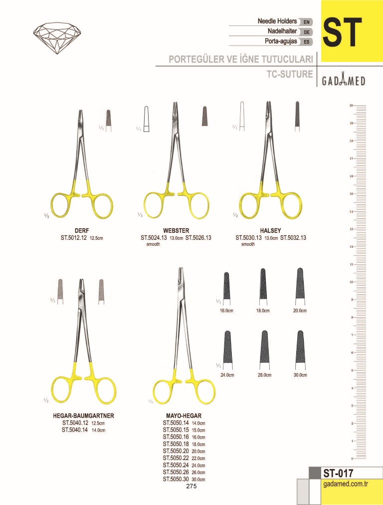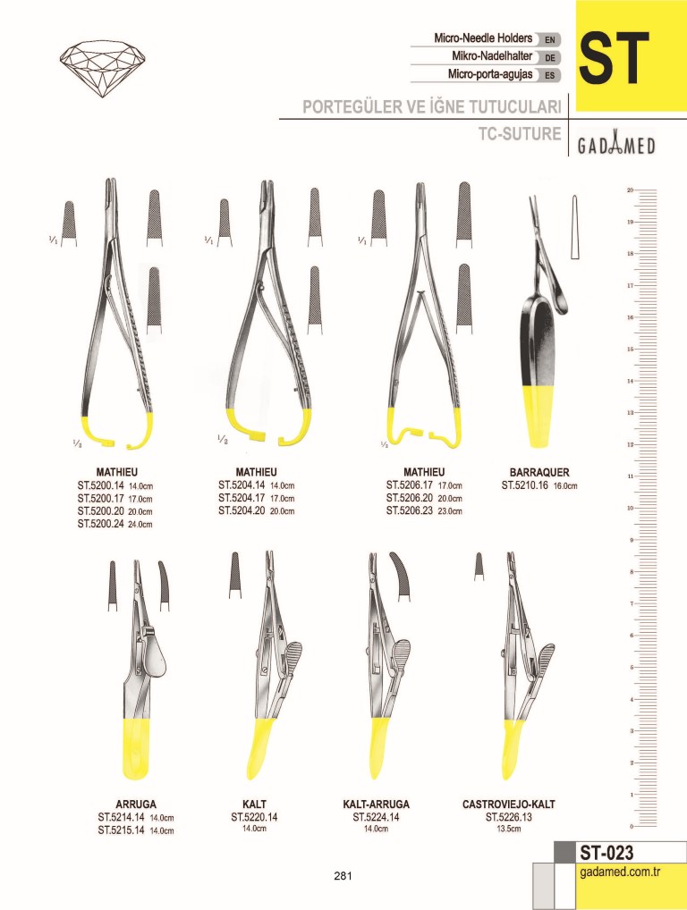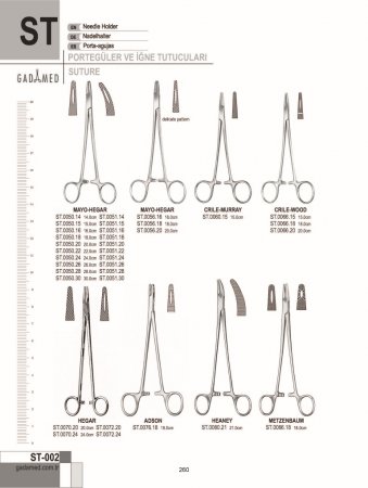 ST.0010.12 8681091034529 DERF PORTEGÜ 12CM ST.0012.12 8681091034536 DERF/CONVERSE PORTEGÜ; LONGİ. TIRTIKLI 12.5CM ST.0020.12 8681091034543 COLLIER PORTEGÜ 12.5CM ST.0024.13 8681091034550 WEBSTER PORTEGÜ, DÜZ 13CM ST.0026.13 8681091034567 WEBSTER PORTEGÜ, TIRTIKLI 13CM ST.0030.13 8681091034574 HALSEY PORTEGÜ, DÜZ 13CM ST.0032.13 8681091034581 HALSEY PORTEGÜ TIRTIKLI; KAN OLUĞU İLE, 13CM ST.0036.13 8681091034598 NEIVERT PORTEGÜ 13CM ST.0040.12 8681091034604 HEGAR BAUMGARTNER PORTEGÜ 12.5CM ST.0040.14 8681091034611 HEGAR BAUMGARTNER PORTEGÜ 14CM ST.0046.13 8681091034628 BROWN PORTEGÜ 13CM ST.0046.18 8681091034635 BROWN PORTEGÜ 18CM ST.0050.14 8681091034642 MAYO HEGAR PORTEGÜ 14CM ST.0050.15 8681091034659 MAYO HEGAR PORTEGÜ 15CM ST.0050.16 8681091034666 MAYO HEGAR PORTEGÜ 16CM ST.0050.18 8681091034673 MAYO HEGAR PORTEGÜ 18CM ST.0050.20 8681091034680 MAYO HEGAR PORTEGÜ 20CM ST.0050.22 8681091034697 MAYO HEGAR PORTEGÜ 22CM ST.0050.24 8681091034703 MAYO HEGAR PORTEGÜ 24CM ST.0050.26 8681091034710 MAYO HEGAR PORTEGÜ 26CM ST.0050.28 8681091034727 MAYO HEGAR PORTEGÜ 28CM ST.0050.30 8681091034734 MAYO HEGAR PORTEGÜ 30CM ST.0051.14 8681091034741 MAYO HEGAR PORTEGÜ KAVİSLİ 14CM ST.0051.15 8681091034758 MAYO HEGAR PORTEGÜ KAVİSLİ 15CM ST.0051.16 8681091034765 MAYO HEGAR PORTEGÜ KAVİSLİ 16CM ST.0051.18 8681091034772 MAYO HEGAR PORTEGÜ KAVİSLİ 18CM ST.0051.20 8681091034789 MAYO HEGAR PORTEGÜ KAVİSLİ 20CM ST.0051.22 8681091034796 MAYO HEGAR PORTEGÜ KAVİSLİ 22CM ST.0051.24 8681091034802 MAYO HEGAR PORTEGÜ KAVİSLİ 24CM ST.0051.26 8681091034819 MAYO HEGAR PORTEGÜ KAVİSLİ 26CM ST.0051.28 8681091034826 MAYO HEGAR PORTEGÜ KAVİSLİ 28CM ST.0051.30 8681091034833 MAYO HEGAR PORTEGÜ KAVİSLİ 30CM ST.0056.16 8681091034840 MAYO HEGAR PORTEGÜ, HASSAS 16CM ST.0056.18 8681091034857 MAYO HEGAR PORTEGÜ, HASSAS 18CM ST.0056.20 8681091034864 MAYO HEGAR PORTEGÜ, HASSAS 20CM ST.0060.15 8681091034871 CRILE MURRAY PORTEGÜ 15CM ST.0066.15 8681091034888 CRILE -WOOD PORTEGÜ 15CM ST.0066.18 8681091034895 CRILE-WOOD PORTEGÜ 18CM ST.0066.20 8681091034901 CRILE-WOOD PORTEGÜ 20CM ST.0070.20 8681091034918 HEGAR PORTEGÜ, TIRTIKLI 20CM ST.0070.24 8681091034925 HEGAR PORTEGÜ, TIRTIKLI 24CM ST.0072.20 8681091034932 HEGAR PORTEGÜ, OLUKLU 20CM ST.0072.24 8681091034949 HEGAR PORTEGÜ, OLUKLU 24CM ST.0076.18 8681091034956 ADSON PORTEGÜ 18CM ST.0080.21 8681091034963 HEANEY PORTEGÜ 21CM ST.0086.18 8681091034970 METZENBAUM PORTEGÜ 18CM ST.0090.26 8681091034987 MASSON LUETHY İPORTEGÜ 26CM ST.0096.18 8681091034994 SAROT PORTEGÜ 18CM ST.0096.26 8681091035007 SAROT PORTEGÜ 26CM ST.0100.20 8681091035014 WERTHEİM PORTEGÜ 20CM ST.0100.24 8681091035021 WERTHEİM PORTEGÜ 24CM ST.0106.23 8681091035038 STRATTE PORTEGÜ 23CM ST.0110.12 8681091035045 BRUCE CLARK PORTEGÜ 12.5CM ST.0116.13 8681091035052 KILNER PORTEGÜ 13.5CM ST.0116.16 8681091035069 KILNER PORTEGÜ 16.5CM ST.0120.20 8681091035076 THOMSON WALKER PORTEGÜ S/J 20CM ST.0126.20 8681091035083 BOZEMAN PORTEGÜ S/J 20CM ST.0126.24 8681091035090 BOZEMAN PORTEGÜ S/J 24CM ST.0130.27 8681091035106 JOHNSON PORTEGÜ 27CM ST.0136.18 8681091035113 FINOCHIETTO PORTEGÜ 18CM ST.0136.20 8681091035120 FINOCHIETTO PORTEGÜ 20CM ST.0136.27 8681091035137 FINOCHIETTO PORTEGÜ 27CM ST.0140.27 8681091035144 MASSON PORTEGÜ 27CM ST.0144.27 8681091035151 WAÇI.ENSTEEN PORTEGÜ 27CM ST.0146.27 8681091035168 WAÇI.ENSTEEN PORTEGÜ, DAR 27CM ST.0150.23 8681091035175 JAMISON PORTEGÜ 23.5CM ST.0156.17 8681091035182 M.G.H. MASS GENERAL HOSPİTAL PORTEGÜ 17CM ST.0160.16 8681091035199 GILLIES PORTEGÜ, SAĞ EL TİPİ 16CM ST.0161.16 8681091035205 BROWN PORTEGÜ 16CM "SOL EL" ST.0170.14 8681091035212 OLSEN HEGAR PORTEGÜ 14CM ST.0171.14 8681091035229 OLSEN - HEGAR PORTEGÜ, KAN OLUĞU İLE 14CM ST.0172.17 8681091035236 OLSEN - HEGAR (BRYAN) PORTEGÜ 17CM ST.0174.17 8681091035243 OLSEN - HEGAR PORTEGÜ 17CM ST.0176.14 8681091035250 OLSEN - HEGAR PORTEGÜ 14CM ST.0176.18 8681091035267 OLSEN - HEGAR PORTEGÜ 18CM ST.0180.15 8681091035274 CRILE PORTEGÜ 15CM ST.0186.18 8681091035281 TOENNIS PORTEGÜ 18CM ST.0190.20 8681091035298 LİCHTENBERG PORTEGÜ 20CM ST.0196.14 8681091035304 MACPHAIL PORTEGÜ, BAKIR KISKAÇ 14CM ST.0196.16 8681091035311 MACPHAIL PORTEGÜ, BAKIR KISKAÇ 16CM ST.0196.18 8681091035328 MACPHAIL PORTEGÜ, BAKIR KISKAÇ 18CM ST.0196.20 8681091035335 MACPHAIL PORTEGÜ, BAKIR KISKAÇ 20CM ST.0200.14 8681091035342 MATHIEU PORTEGÜ 14CM ST.0200.17 8681091035359 MATHIEU PORTEGÜ 17CM ST.0200.20 8681091035366 MATHIEU PORTEGÜ 20CM ST.0200.24 8681091035373 MATHIEU PORTEGÜ 24CM ST.0202.14 8681091035380 MATHIEU PORTEGÜ, OLUKLU ÇENE, 14CM ST.0202.17 8681091035397 MATHIEU PORTEGÜ 17CM ST.0202.20 8681091035403 MATHIEU PORTEGÜ 20CM ST.0202.24 8681091035410 MATHIEU PORTEGÜ 24CM ST.0204.14 8681091035427 MATHIEU PORTEGÜ HASSAS TİP 14CM ST.0204.17 8681091035434 MATHIEU PORTEGÜ HASSAS TİP 17CM ST.0206.17 8681091035441 MATHIEU PORTEGÜ 17CM ST.0206.20 8681091035458 MATHIEU PORTEGÜ 20CM ST.0210.16 8681091035465 BARRAQUER PORTEGÜ, DELİKLİ SAP İLE 16CM ST.0214.14 8681091035472 ARRUGA MİKRO PORTEGÜ DÜZ 14CM ST.0215.14 8681091035489 ARRUGA MİKRO PORTEGÜ KAVİSLİ 14CM ST.0220.14 8681091035496 KALT PORTEGÜ 14CM ST.0224.14 8681091035502 KALT ARRUGA PORTEGÜ 14CM ST.0226.13 8681091035519 CASTROVİEJO KALT PORTEGÜ 13.5CM ST.0230.12 8681091035526 BOYNTON PORTEGÜ 12CM ST.0234.16 8681091035533 ARRUGA PORTEGÜ 16CM ST.0235.16 8681091035540 ARRUGA PORTEGÜ KAVİSLİ 16CM ST.0240.11 8681091035557 STEVENSON PORTEGÜ 11CM ST.0246.13 8681091035564 STEVENS PORTEGÜ 13CM ST.0246.15 8681091035571 STEVENS PORTEGÜ 15CM ST.0250.15 8681091035588 WECKER MİKRO PORTEGÜ 15CM ST.0256.14 8681091035595 BARRAQUER PORTEGÜ, TIRTIKLI 14CM ST.0260.09 8681091035601 CASTROVIEJO MİKRO PORTEGÜ DÜZ 9CM ST.0261.09 8681091035618 CASTROVIEJO MİKRO PORTEGÜ KAVİSLİ 9CM ST.0262.09 8681091035625 YAKALAYICI İLE CASTROVİEJO MİKRO PORTEGÜ 9CM ST.0262.14 8681091035632 YAKAL